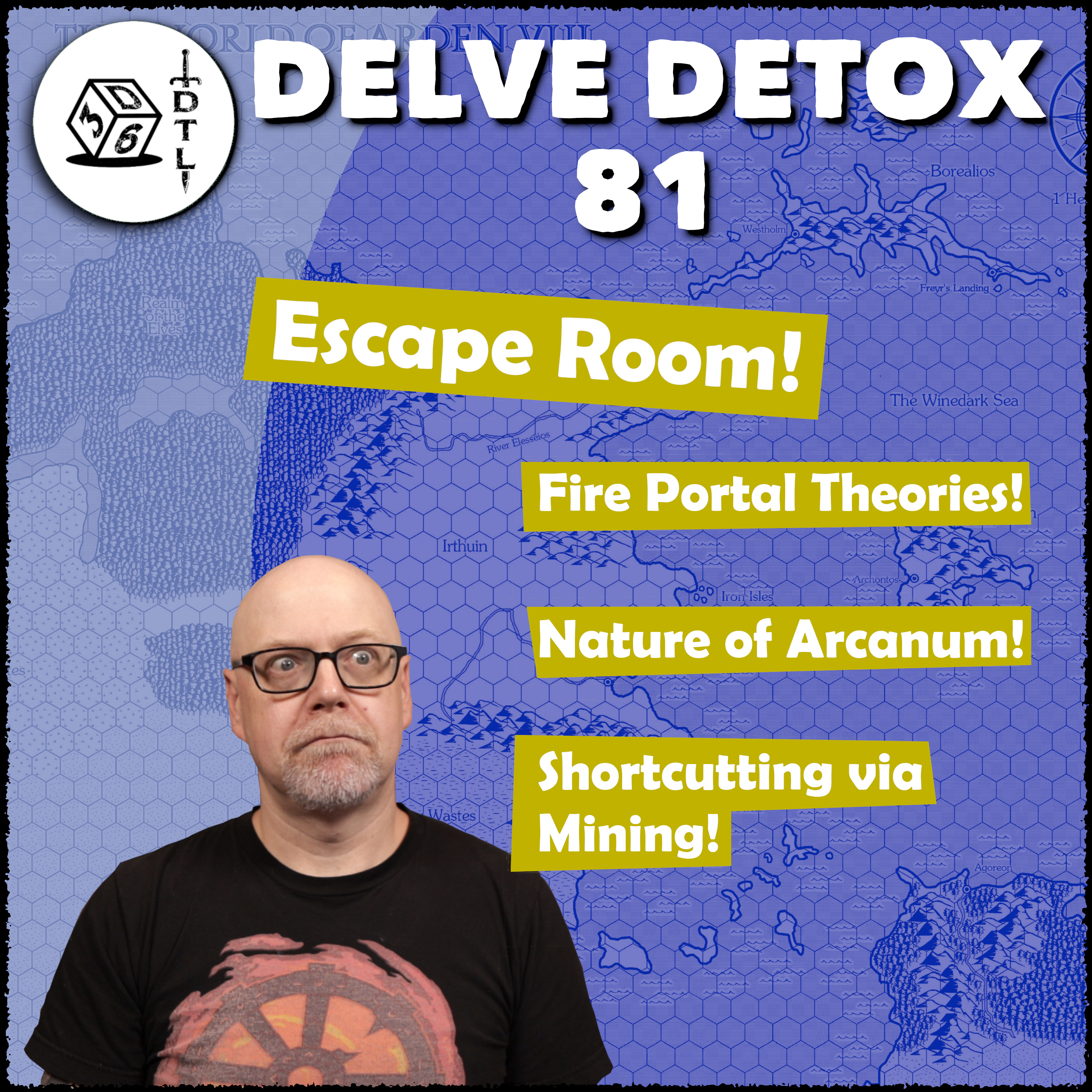 In relation to the events of the session, we chat about scenarios for escaping Plungertown, fire portal theories, the nature of arcanum, and shortcutting via mining!
