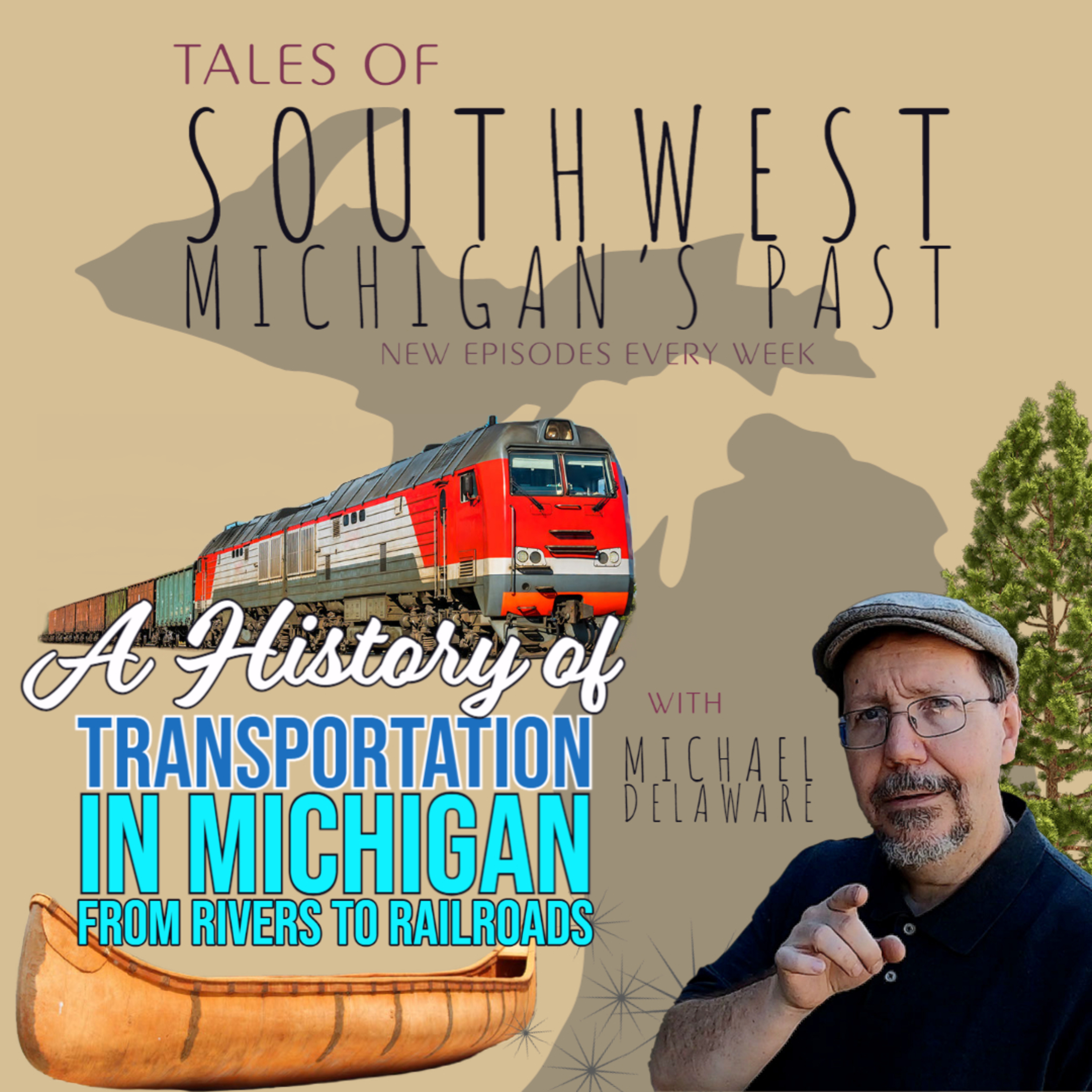 In this episode I explore the broad history of the early transportation in the unsettled territory starting with the Native Americans on the rivers, from the arrival of the French moving forward through Indian Trails, territorial roads, courduroy roads, plank roads and railroads. I use a book entitled 'Right on Track: A History of the Railroads in Eaton County, Michigan' as a guide for this journey, along with other research.