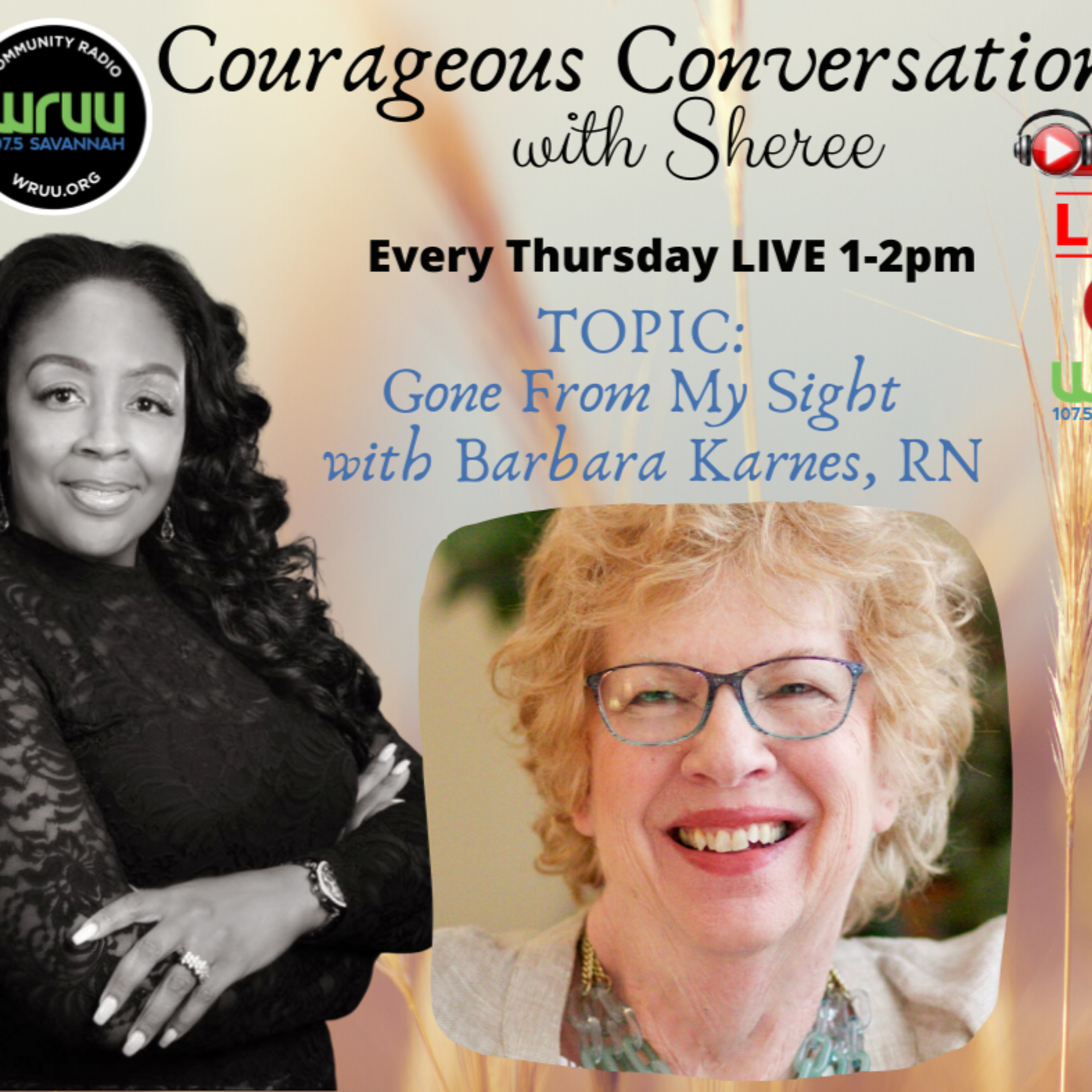 Courageous Conversations with Sheree welcomes Author Barbara Karnes, RN. The topic of discussion is the dying experience. Listen and hear why Barbara wrote the award-winning book, Gone From My Sight which has been translated in every language known to mankind (personal emphasis added). Knowledge reduces fear.