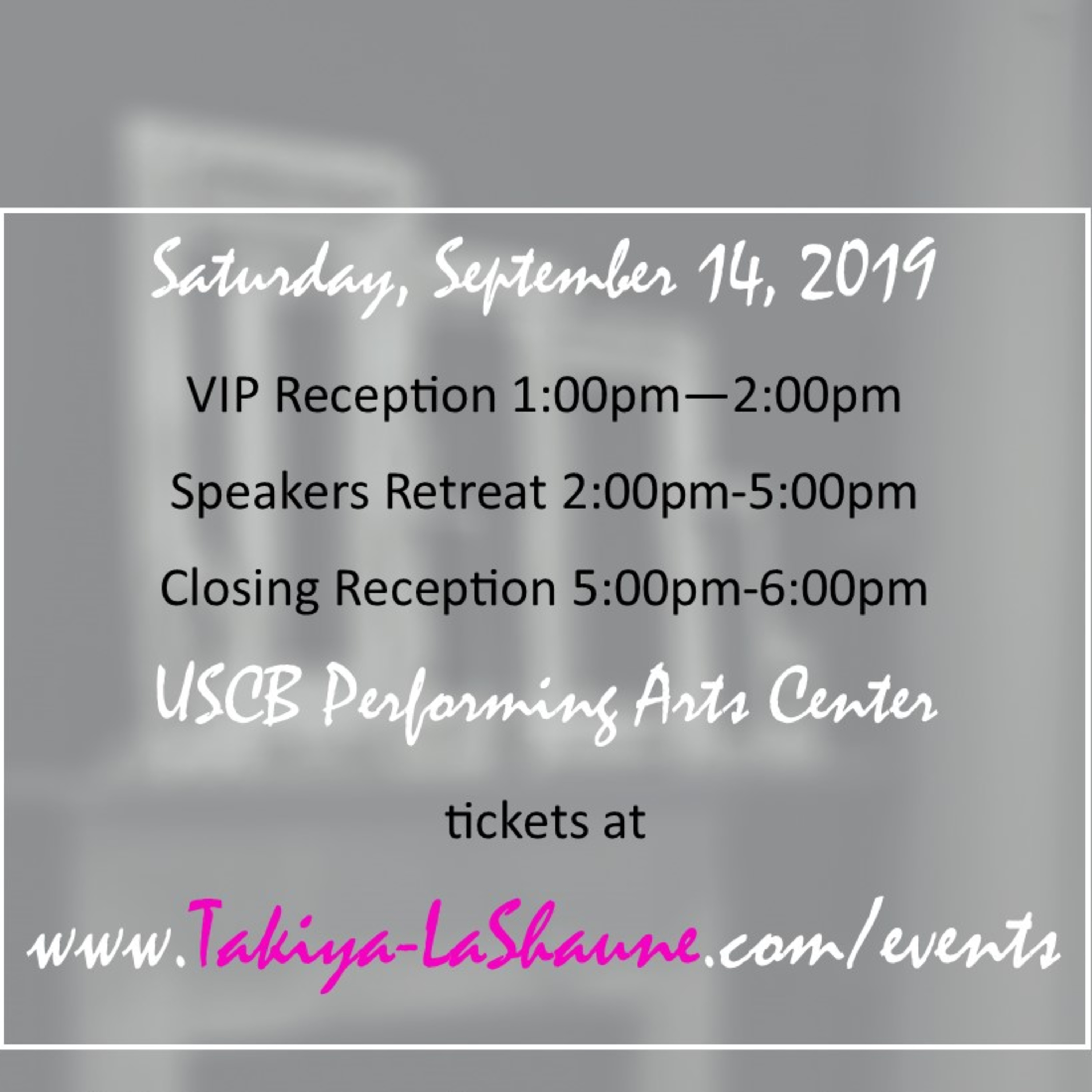 Painfully, Passionately, Perfectly…Purposed will take place at the USCB Center for the Arts, 805 Carteret Street, Beaufort, SC, with a VIP reception from 1-2pm, a day retreat from 2-5pm, and a closing reception from 5-6pm. Ticket prices start at $30 and are available now at www.Takiya-LaShaune.com/events.