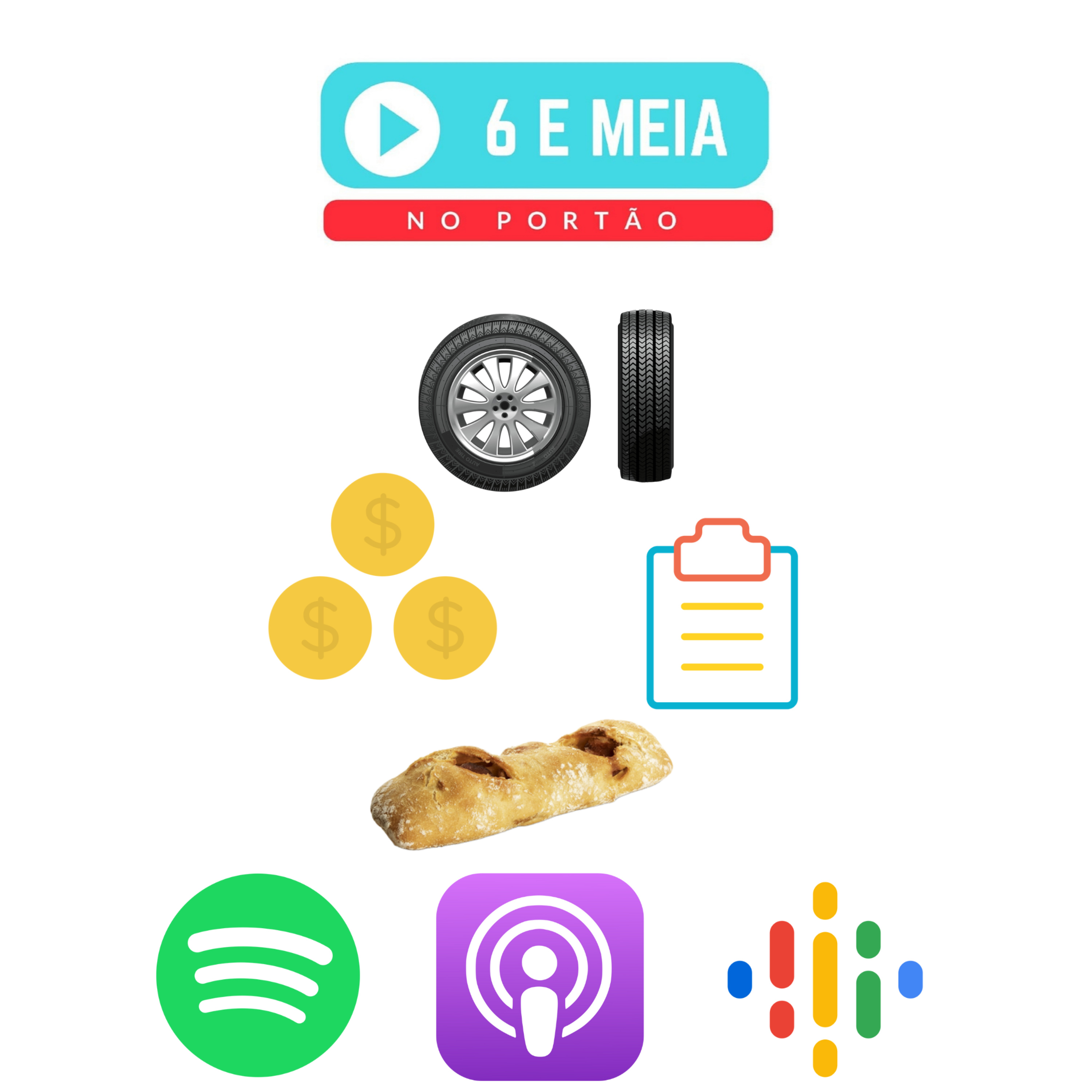 Pão com chouriço, moedas, listas e pneus furados.