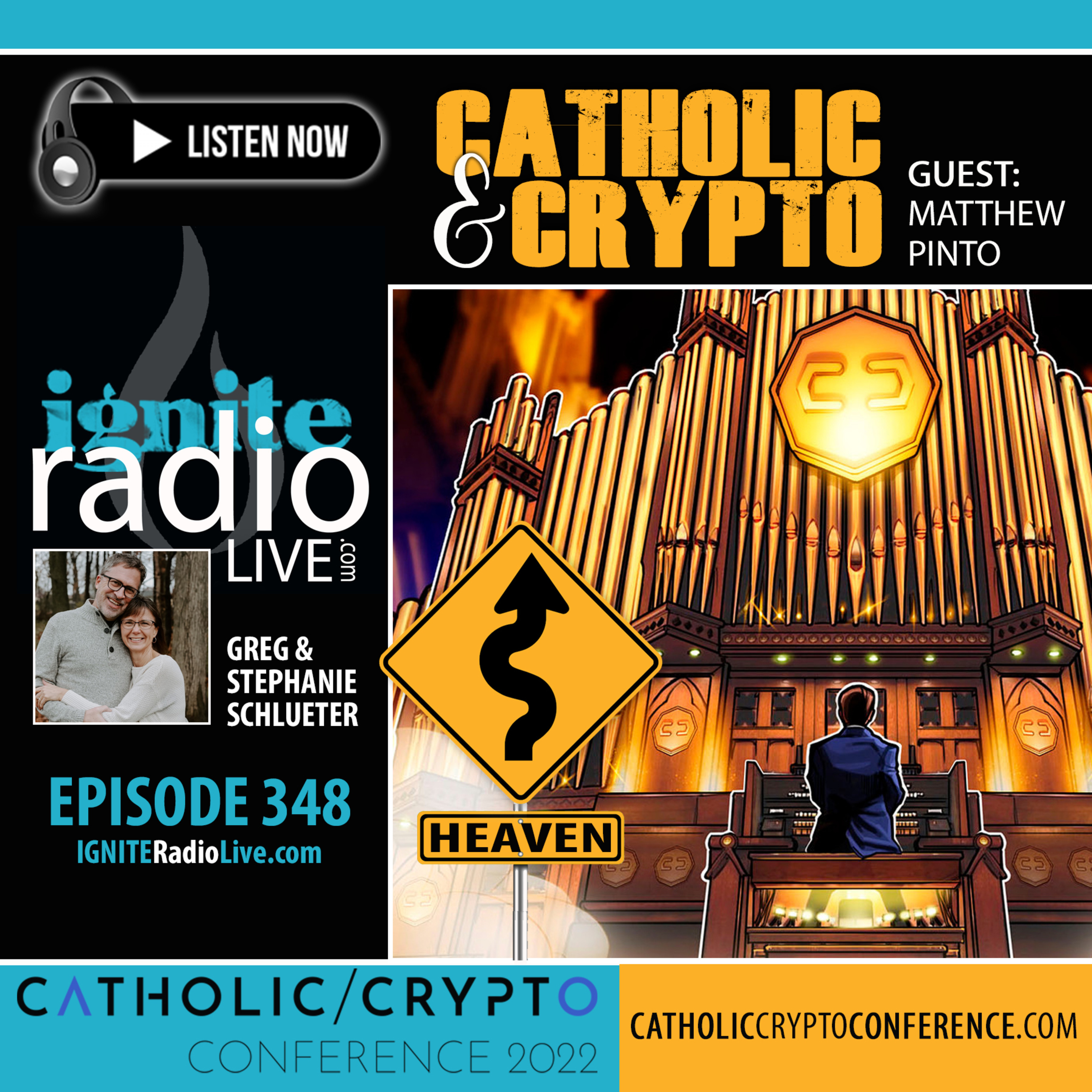 "CATHOLIC & CRYPTO" GUEST: Matthew Pinto. Listen now to this elucidating conversation about Catholicism and this emerging new world of crypto. While sharing his meaningful journey and prominent leadership in major Catholic endeavors, Matthew sets the stage for the first-ever Catholic/Crypto Conference 2022 (GO), bringing together Catholic thought leaders, technologists, crypto enthusiasts, and evangelists-at-heart for two full days of seminars, Meet-ups, strategy sessions, networking, and fun.
