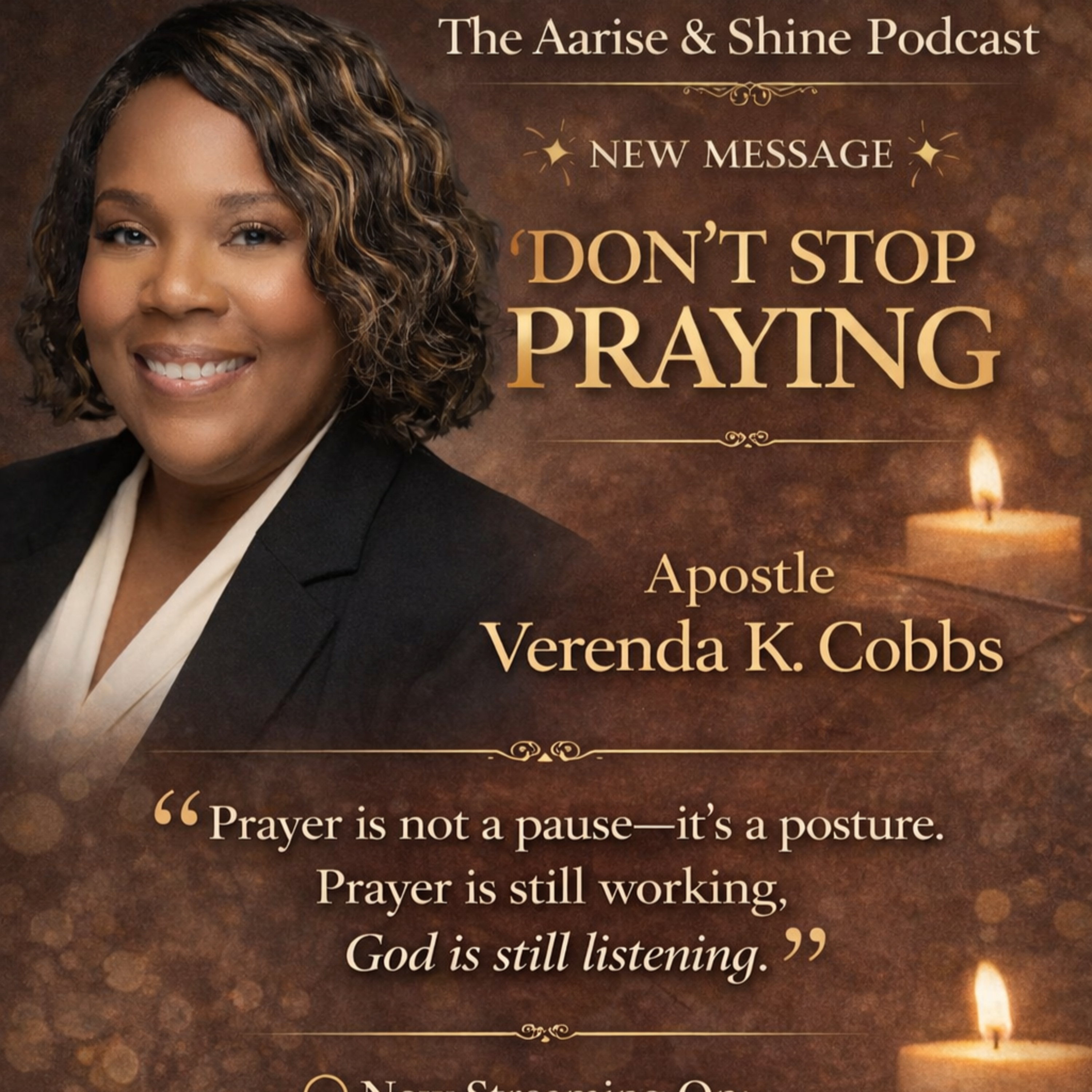 In this powerful episode of The Aarise & Shine Podcast, Apostle Verenda K. Cobbs reminds us that prayer is not something we pause when life gets hard—it’s a posture we maintain. Even when answers feel delayed and circumstances seem unchanged, God is still working behind the scenes.
