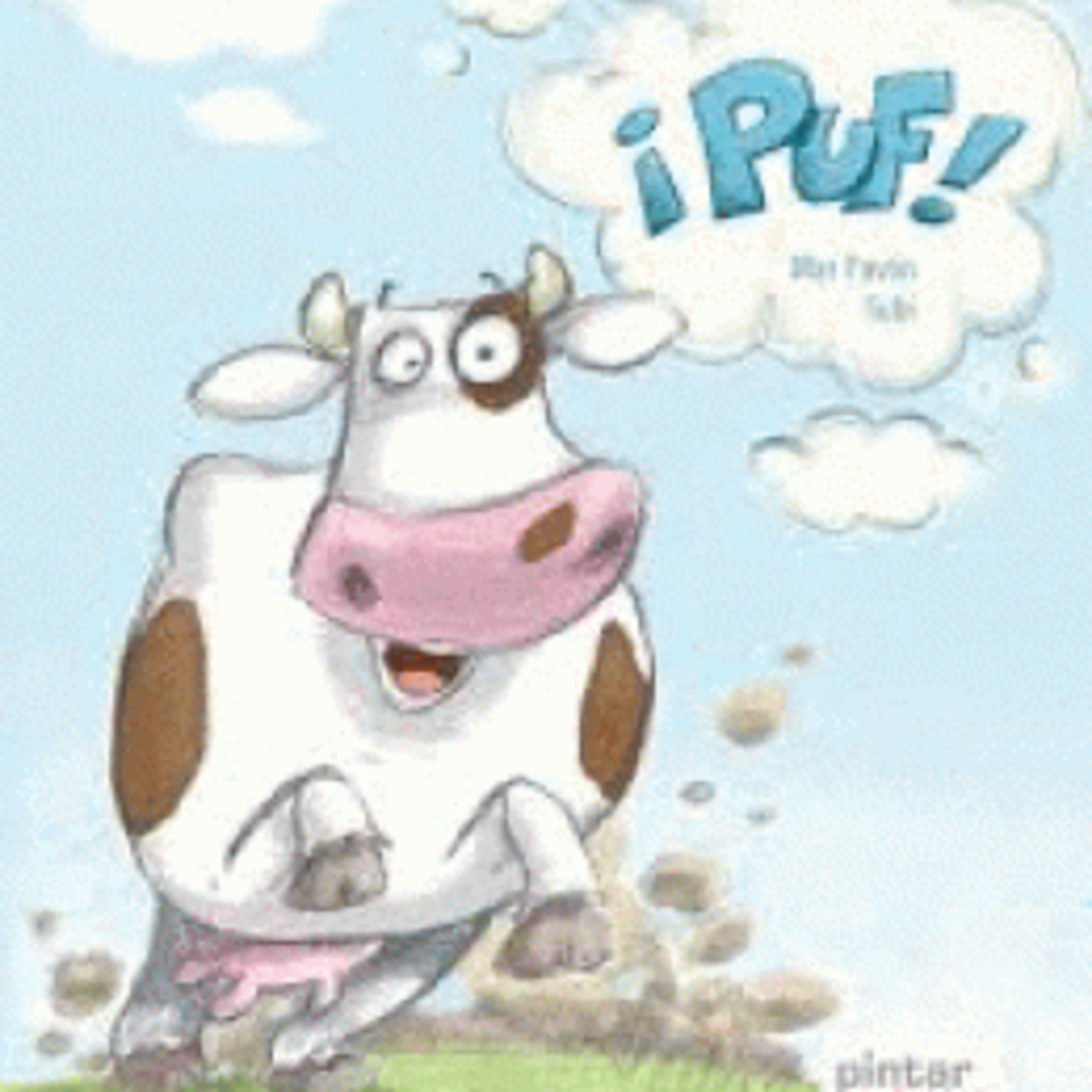 Nuestra amiga vaca tiene 5 lindas manchas, pero la mas traviesa que tambiƩn es muy bonita la tiene en el morro y la pobre vaca no la puede encontrar. AcompaƱala a buscar su manchita