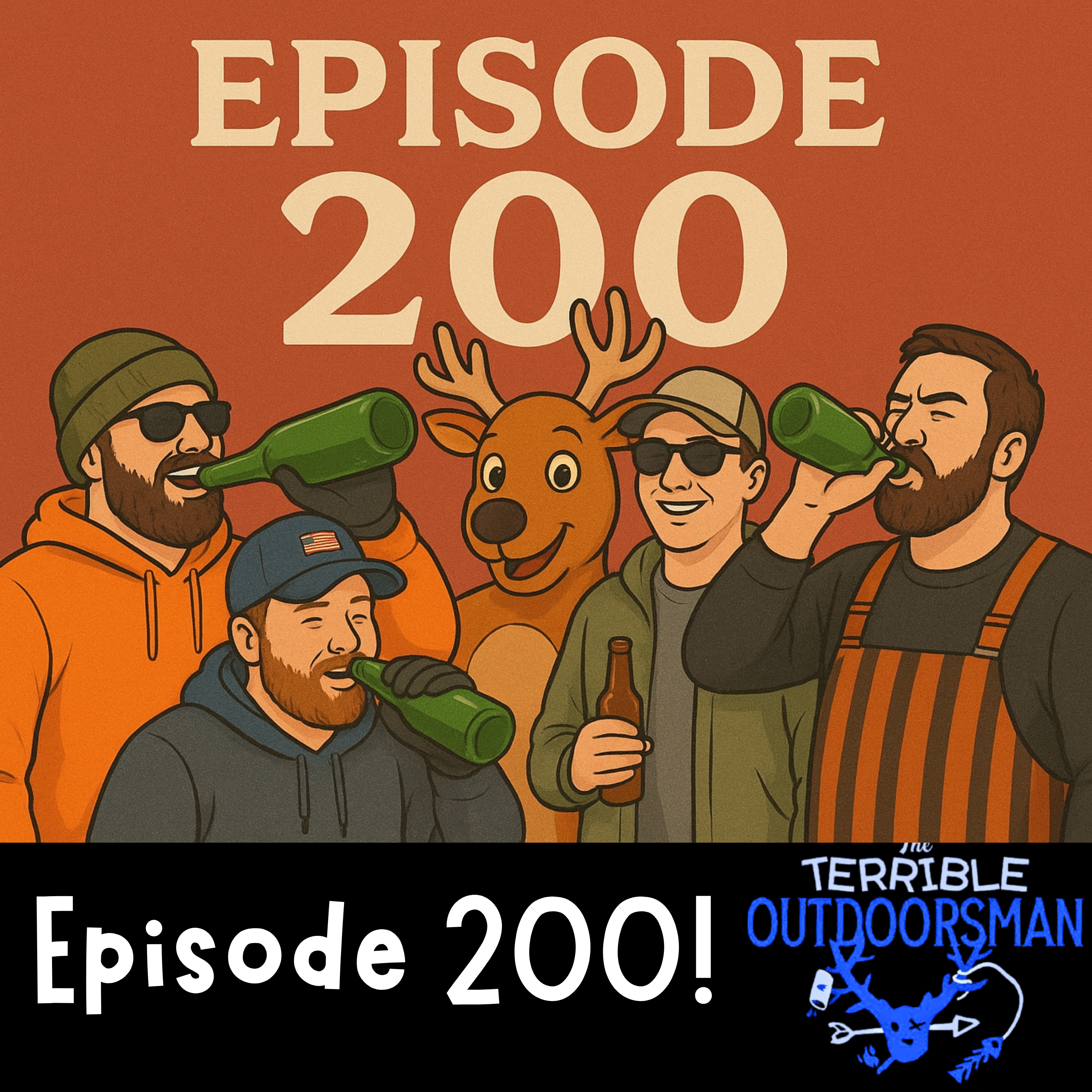It’s finally here — 200 episodes of pure Terrible Outdoorsman madness! The whole crew—Ryan, Bob, Jason, Dan, and Jimi—packs the studio for a milestone party that goes completely off the rails in the best way possible.