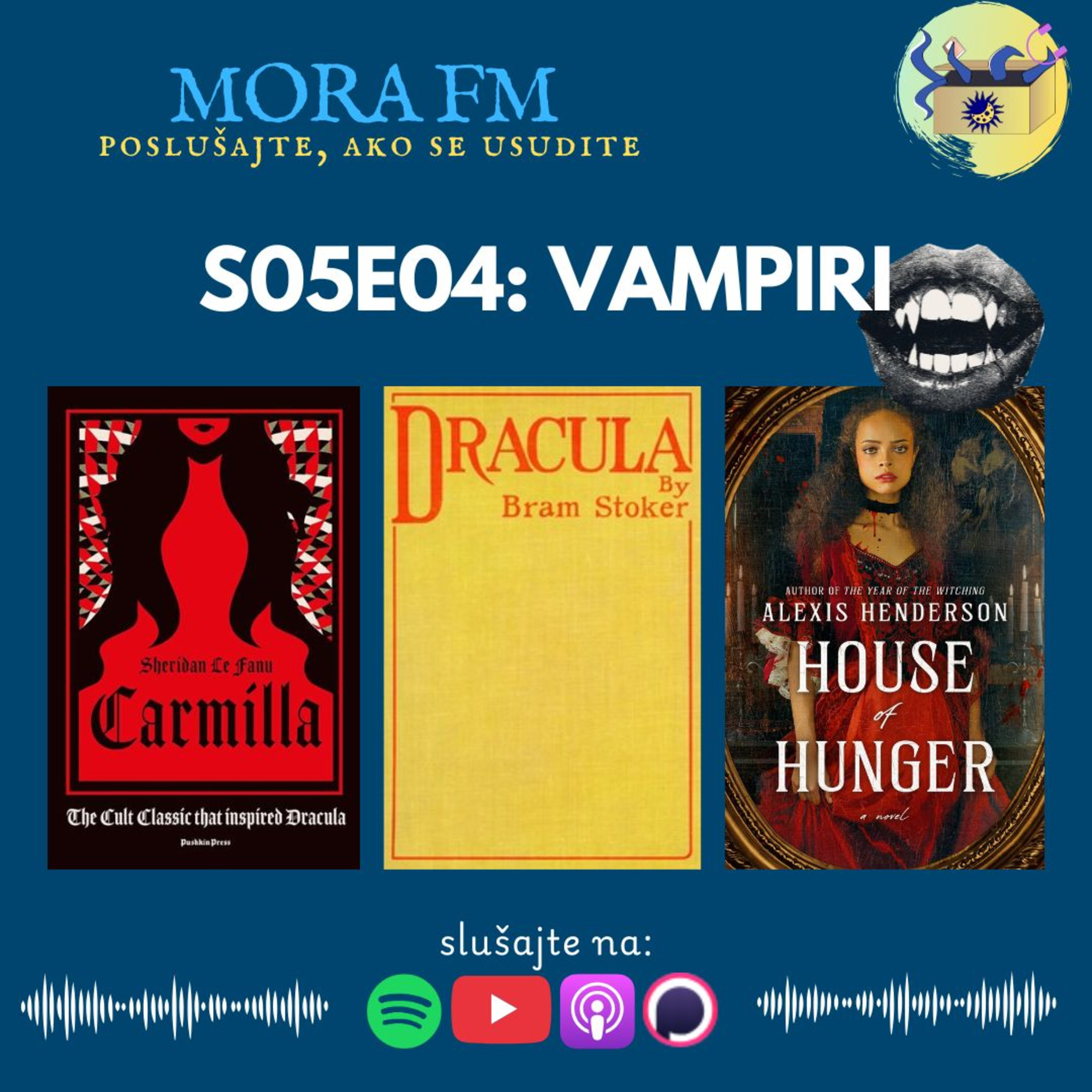 Čudovišta čija popularnost nikada ne umire, samo možda malo ponekad spava, kao u grobu. Pričamo naravno o vampirima, koji su se ponovno ustali iz svojeg lijesa i sada paradiraju kroz nove hit filmove i knjige. Kakve sve vampire imamo, zašto ih volimo, zašto ih ne volimo, koje knjige preporučamo i što mislimo da je dobro za znati kod pisanja, poslušajte u ovoj krvoločnoj epizodi.