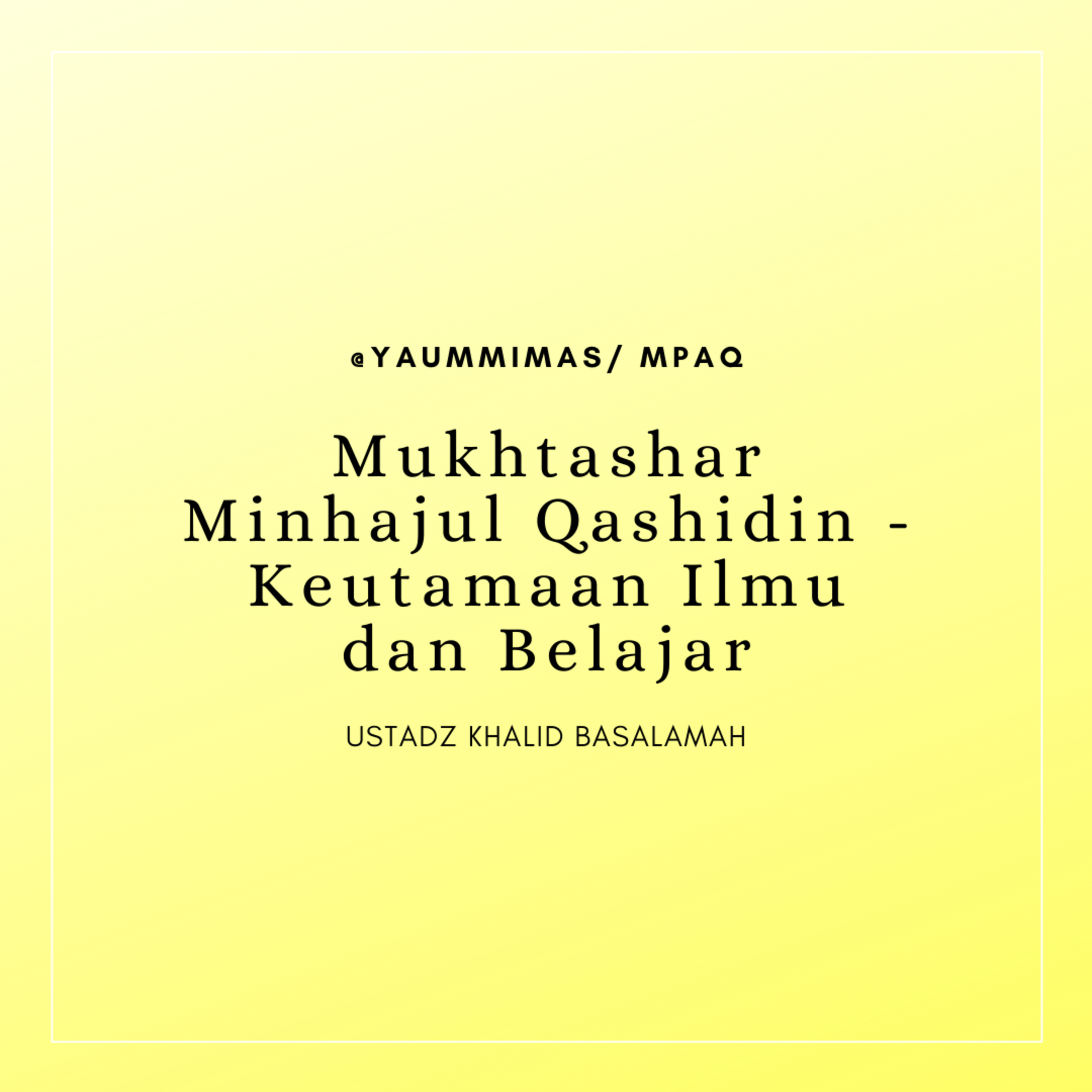 Ustadz Khalid Basalamah - Mukhtashar Minhajul Qashidin - Keutamaan Ilmu dan Belajar