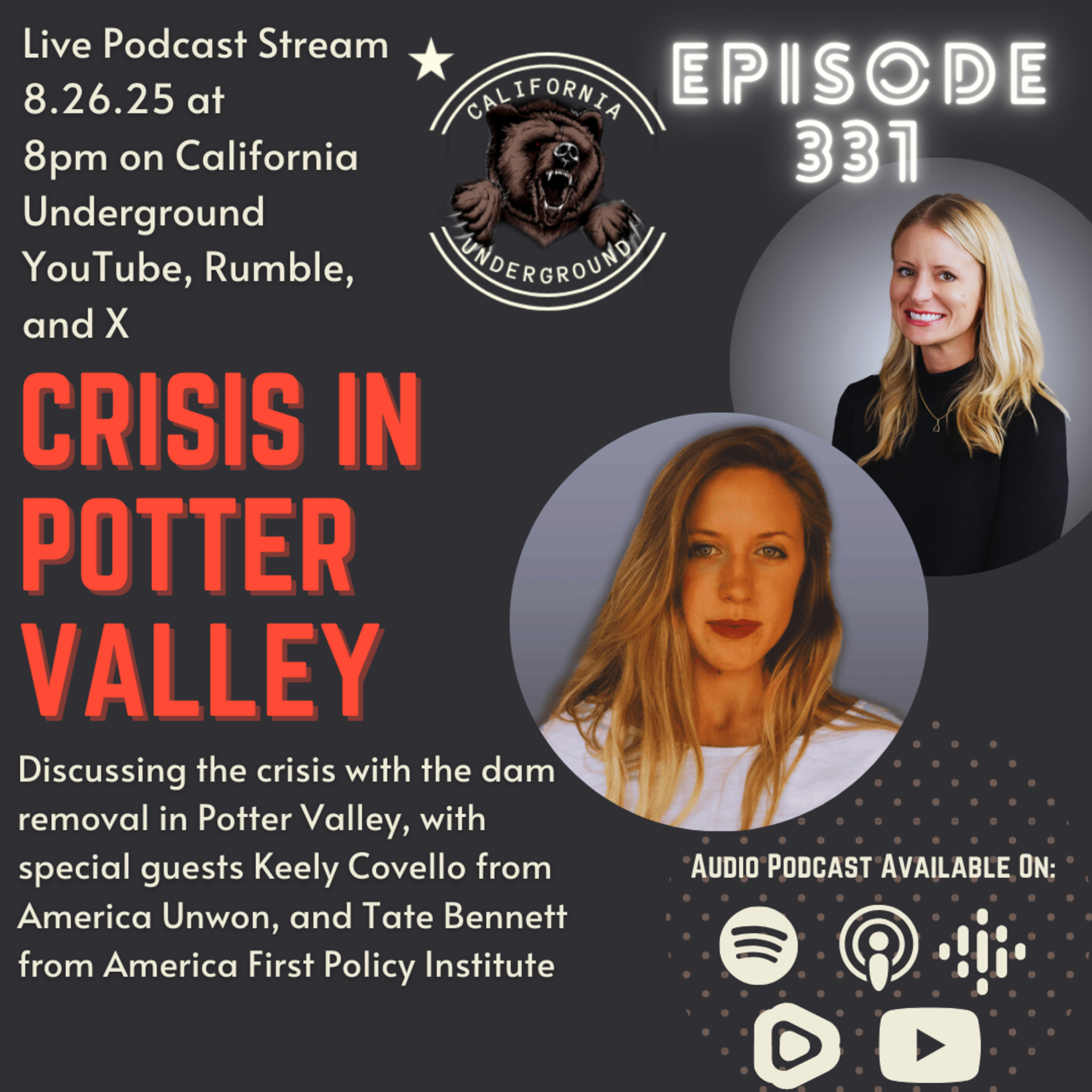 In this episode of the California Underground podcast, the hosts discuss the critical issue surrounding the Potter Valley Dam and its impending removal by PG&E, which threatens the water supply for farmers and ranchers in the region. Special guests Tate Bennett and Keeley Covello provide insights into the historical significance of the dam, the environmental policies driving its removal, and the broader implications for California's agricultural landscape. The conversation highlights the struggles of local farmers, the role of government and NGOs, and the importance of social media in raising awareness about these pressing issues.