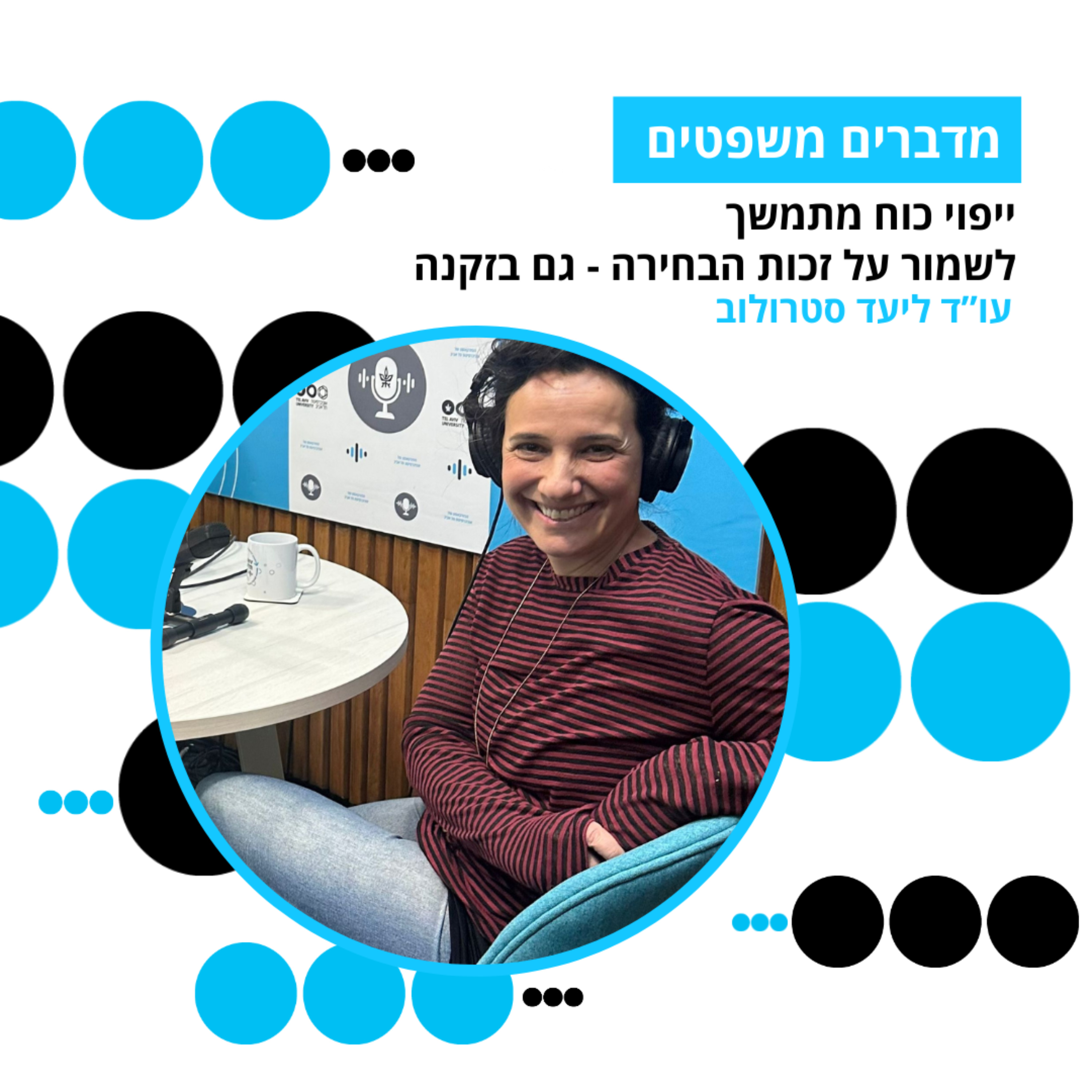 עצרתם פעם לחשוב מי יקבל החלטות במקומכם כשכבר לא תוכלו לעשות זאת בעצמכם? ייפוי כוח מתמשך הוא לא רק מסמך משפטי טכני, אלא תהליך עמוק של מחשבה על העתיד (הקרוב או הרחוק), ששומר על זכות הבחירה גם של מי שכבר לא יכול לבחור. עו"ד ליעד סטרולוב מהקליניקה לזכויות אנשים בזקנה בפקולטה למשפטים באוניברסיטת תל אביב משוחחת עם תלמידי הפקולטה, שחר שלו ולירון שביט, על הכלי המשפטי ששינה את שיטת האפוטרופסות, על התהליך האישי והמשפחתי שעובר מי שחותם על המסמך, ועל הזכות שמגיעה לכל אחד להזדקן בדרך שלו.