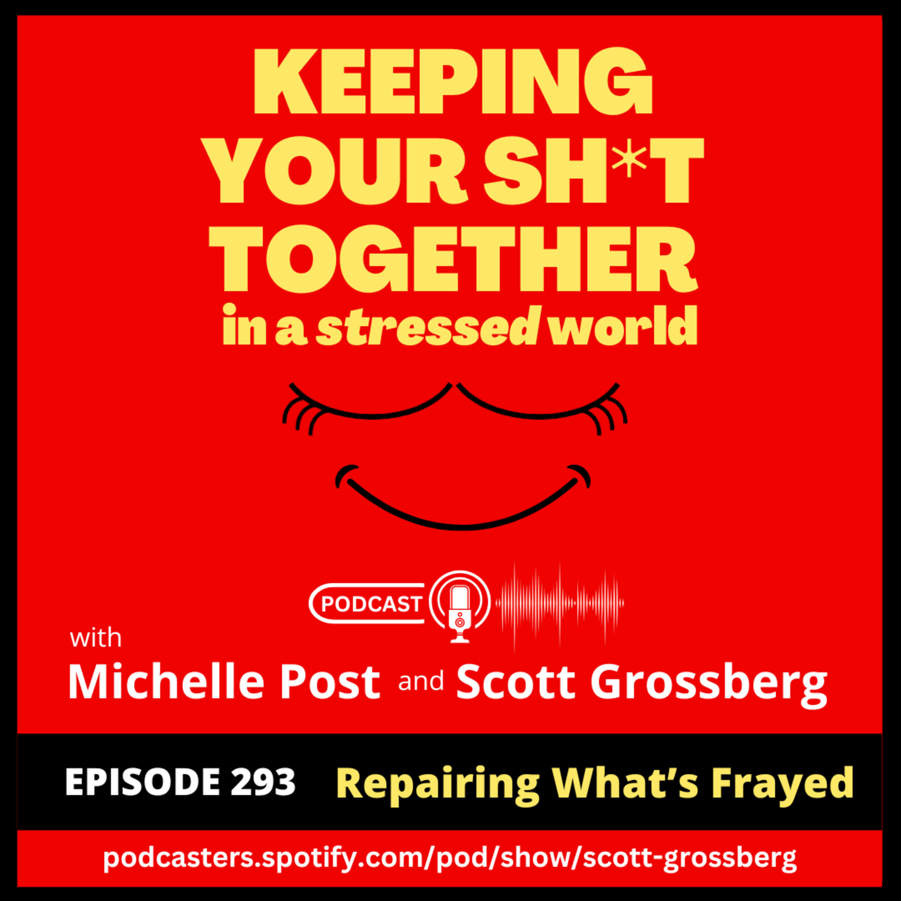 Keeping Your Sh*t Together in a Stressed World is a podcast hosted by Michelle Post, MA, LMFT and Scott Grossberg, JD, CLC, CCH, NLP, and is 30 minutes of raw, irreverent, and results-oriented discussion with one purpose in mind . . . to help you cope, thrive, and survive the craziness that's going on in the world.
