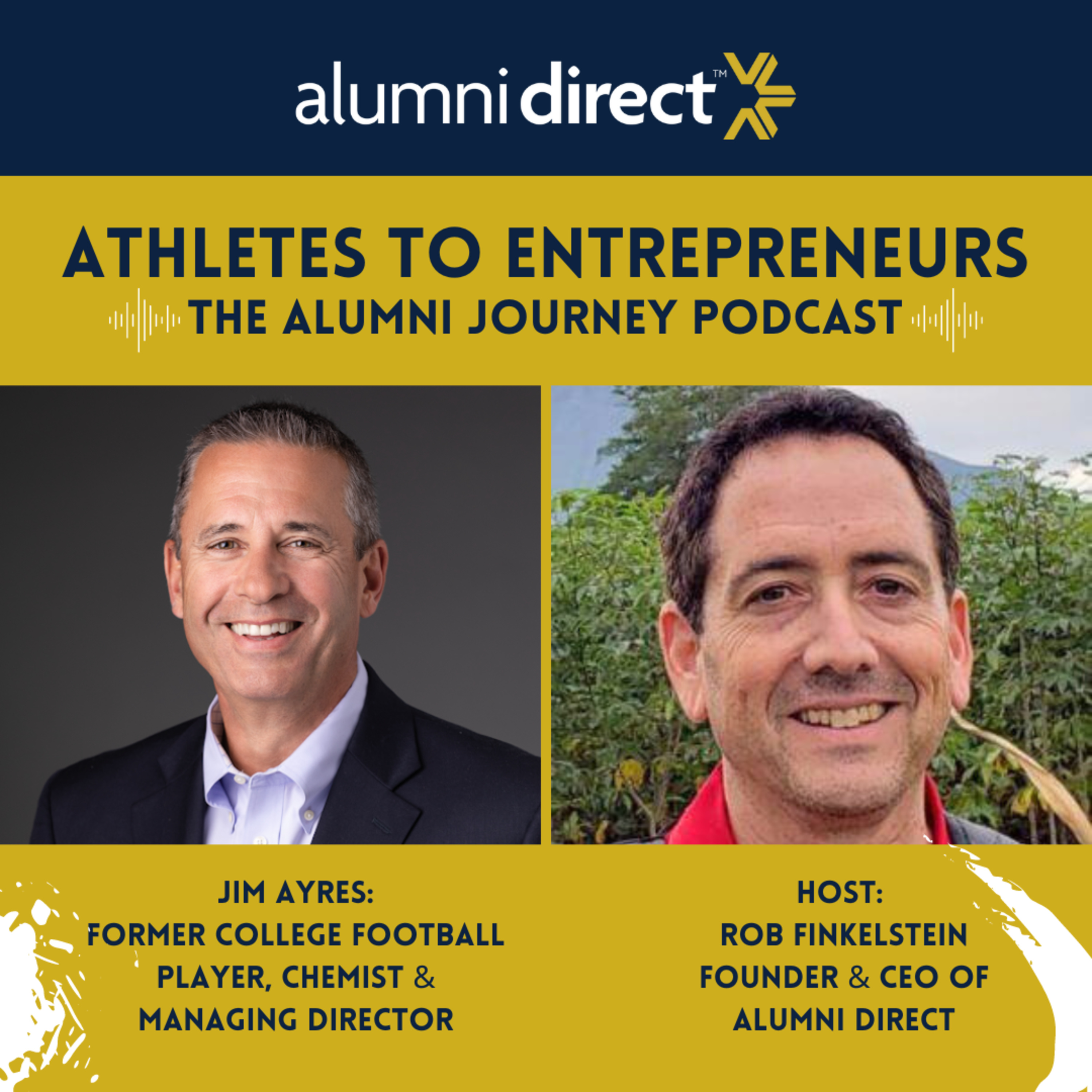On this episode of Alumni Direct's show "ATHLETES TO ENTREPRENEURS: The Alumni Journey," we talk to Jim Ayres, former college football player, chemist and Managing Director at Amway.