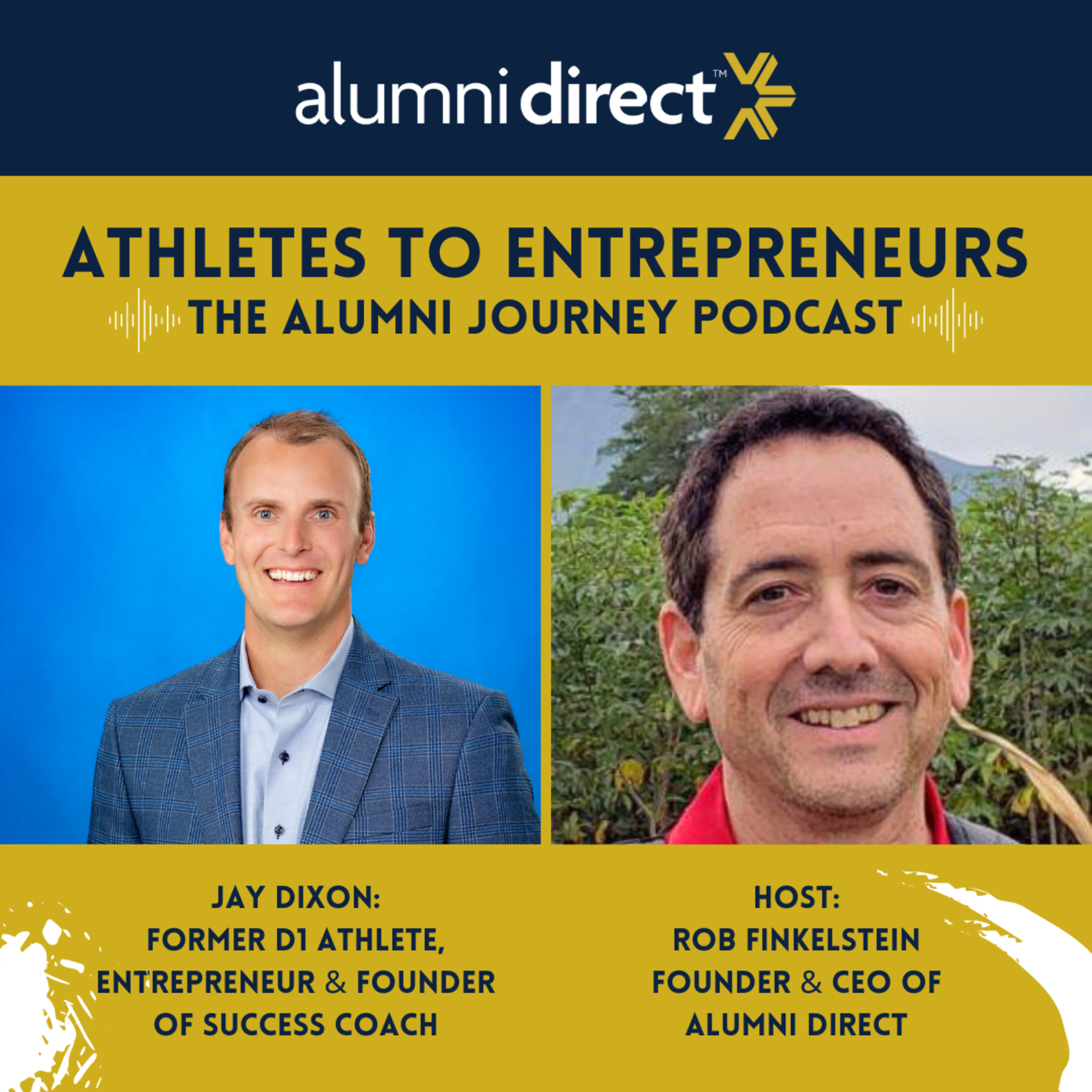 On this episode of Alumni Direct's show "ATHLETES TO ENTREPRENEURS: The Alumni Journey," we talk to Jay Dixon, former Division 1 football player, entrepreneur and founder of Success Coach, an organization with a mission to empower former athletes to thrive in the business world after their sport ends.