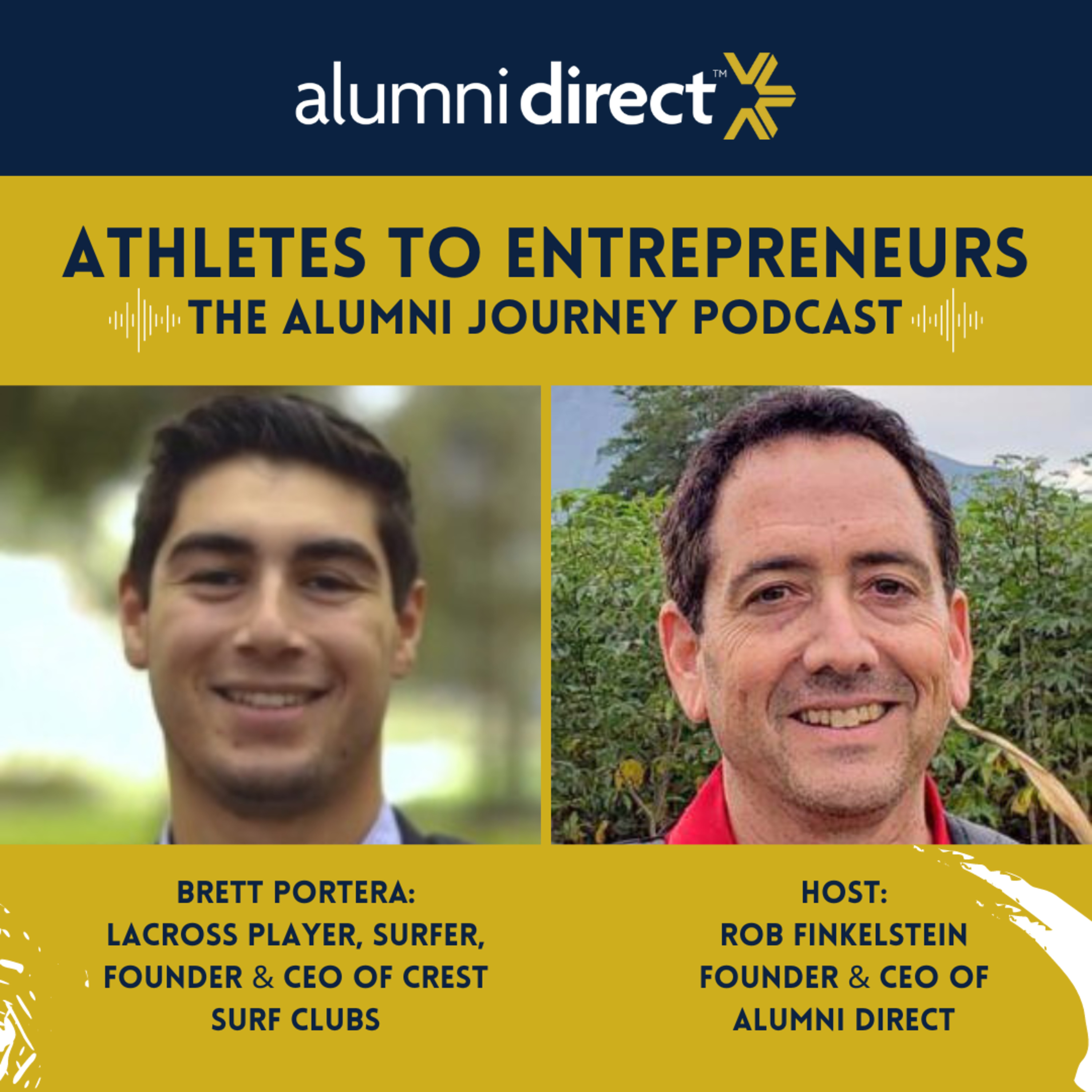On this episode of Alumni Direct's show "ATHLETES TO ENTREPRENEURS: The Alumni Journey," we talk to Brett Portera, lacrosse player, surfer, and the co-founder and CEO of Crest Surf Clubs.