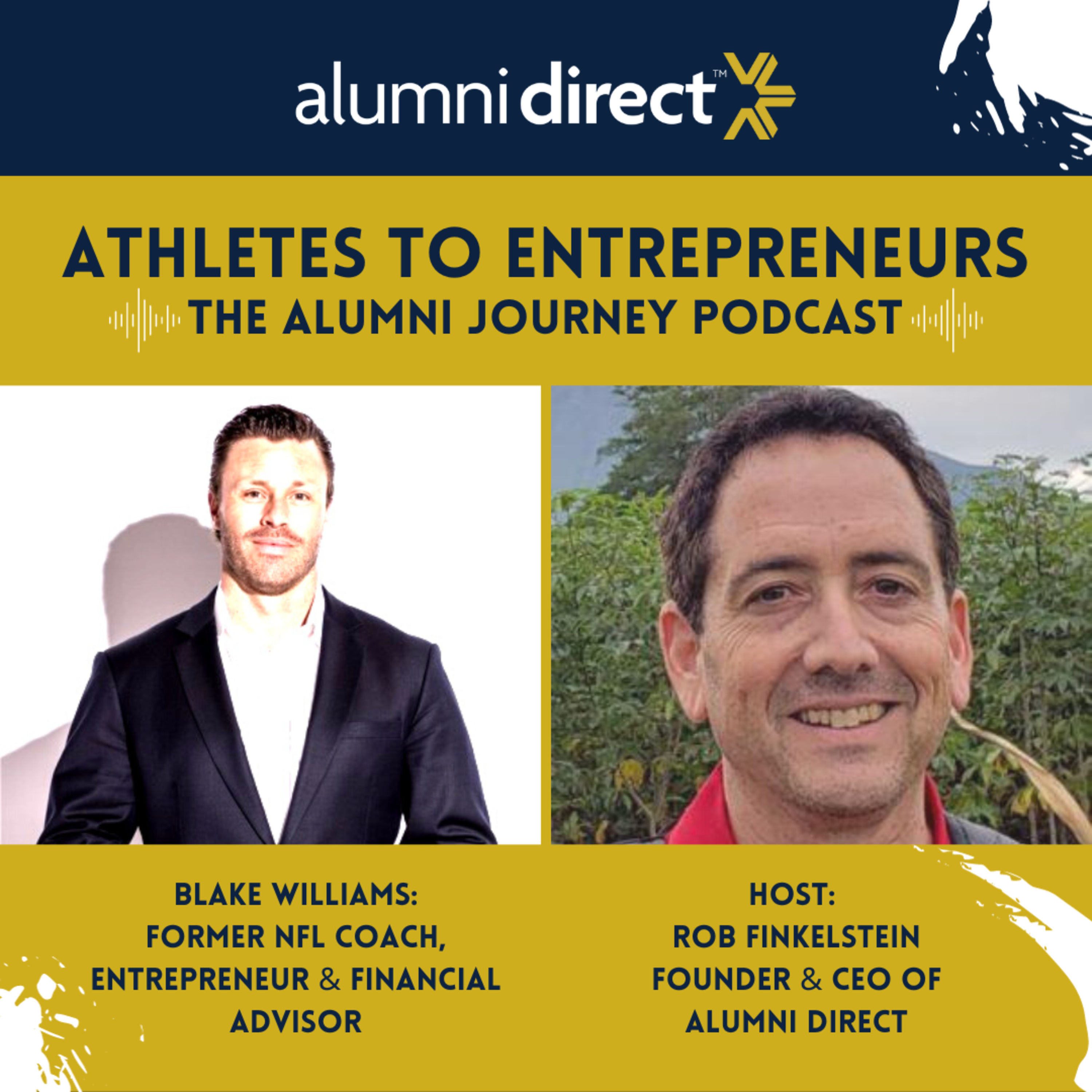 On this episode of Alumni Direct's show "ATHLETES TO ENTREPRENEURS: The Alumni Journey," we talk to Blake Williams, former football player & NFL coach, entrepreneur, financial advisor and podcast host.