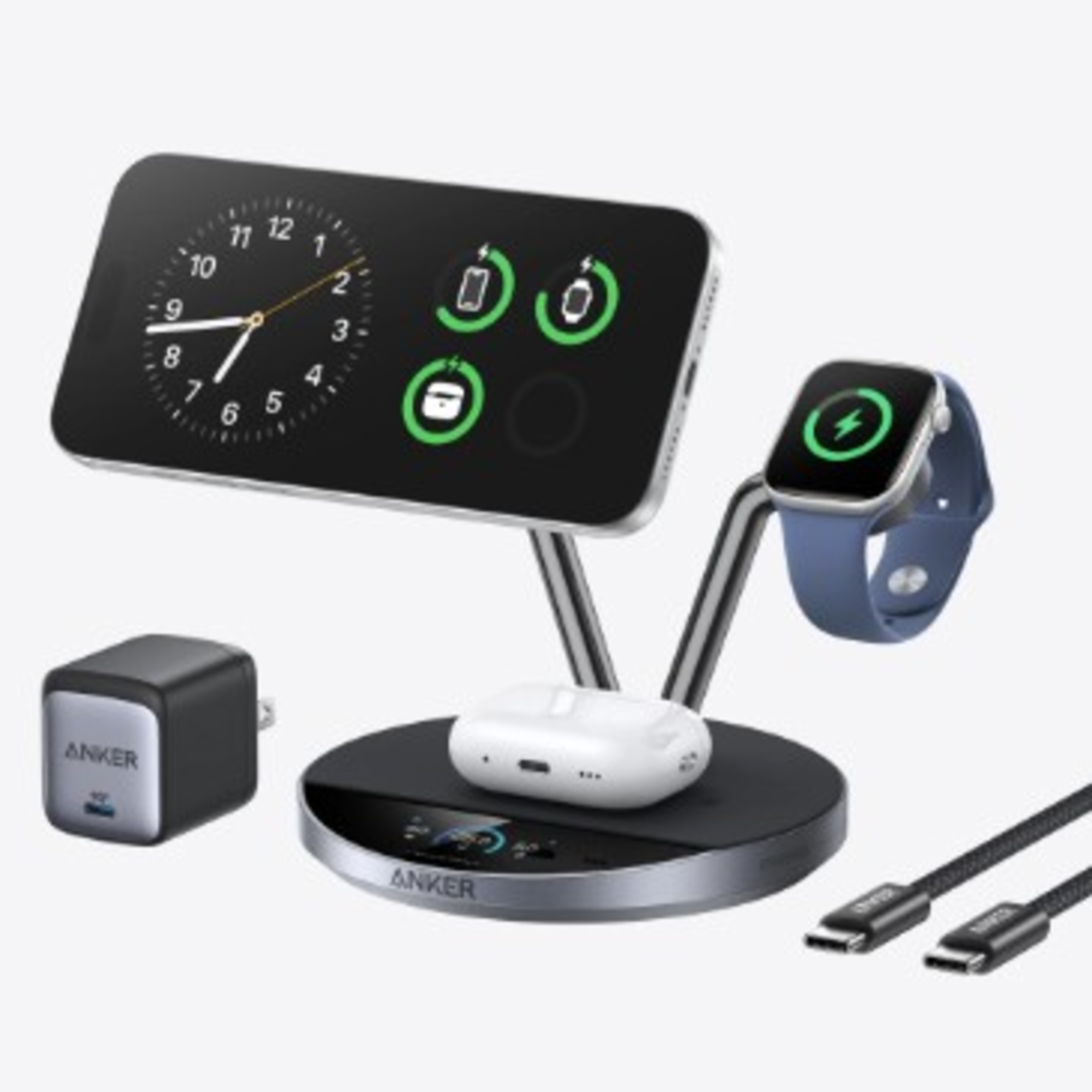 Techstination, your destination for gadgets and gear. I’m Fred Fishkin. Keeping things charged without a jumble of wires can be a challenge. One way to make that desk or side table less messy is with a charging station that does double duty or in this case triple duty. The new Prime 3 in 1 wireless charging station from Anker can handle a phone…an Apple Watch and earbuds all it once. It is a stand that keeps your phone visible and powered with 25 watts of ultra fast wireless charging and it features active cooling for safer charging. There is also a smart display in the base for status and power adjustments. It has a clock mode too and Blueooth connectivity. It’s the most impressive dock of its kind that we’ve seen and while the list is about 280 dollars we’ve seen pricing under 180, so shop around.