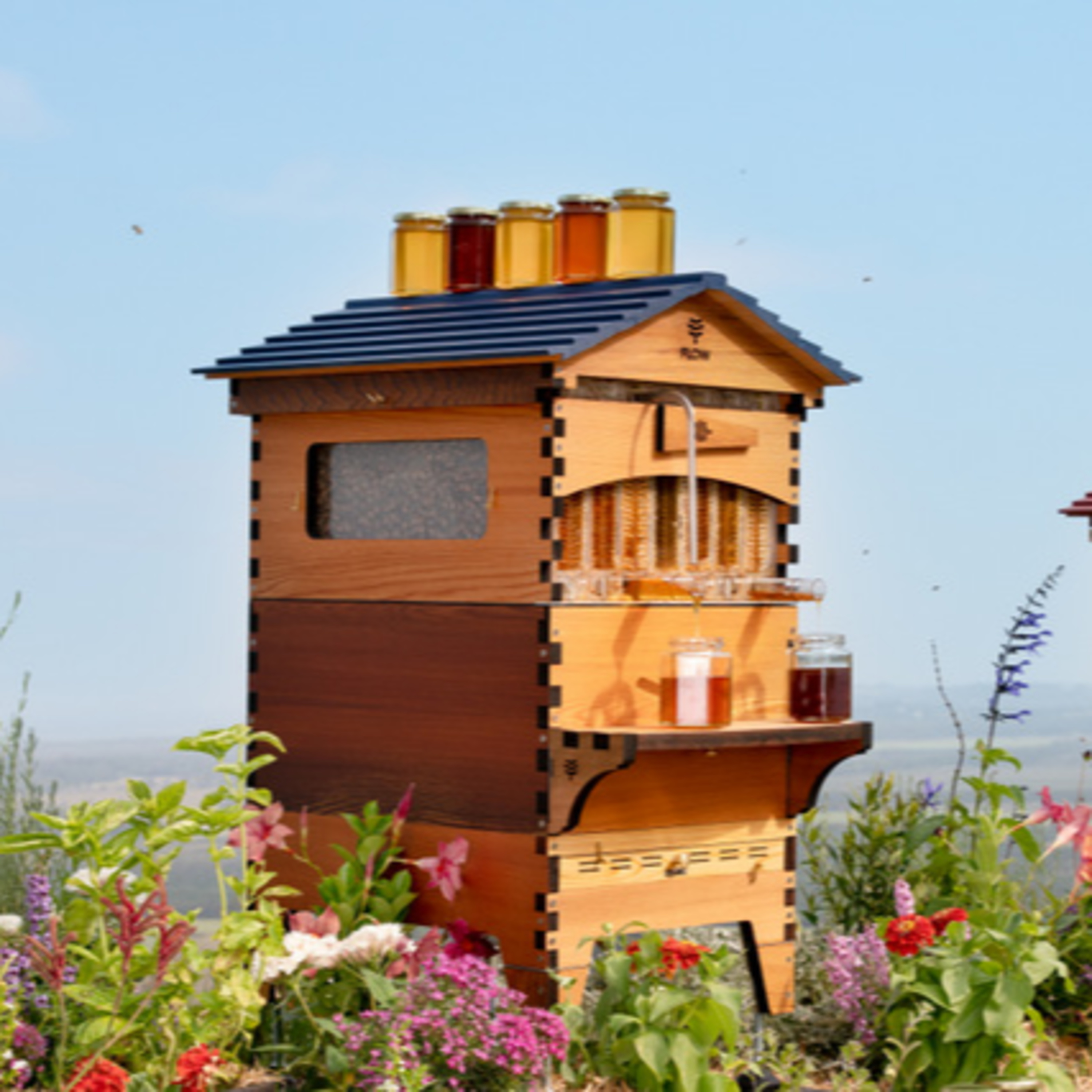 There are added windows and locks too. You can learn more about the latest in bee keeping tech at www.honeyflow.com. And they do ship to the U.S. and Canada.