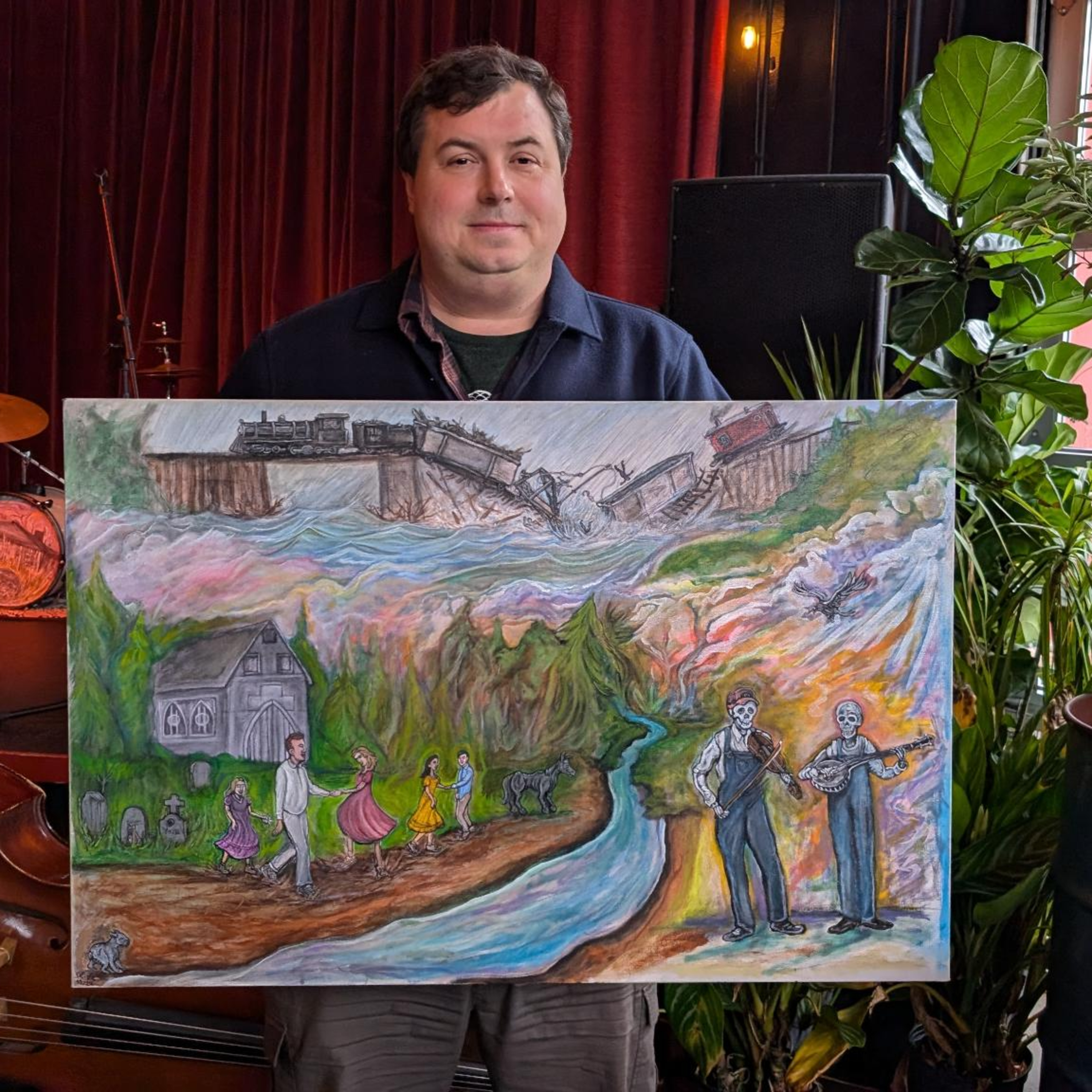 The song is on David’s album “Run, Skeleton, Run”. The picture you are looking at was painted by David’s son, Robert. What follows is the story behind the song and the painting…