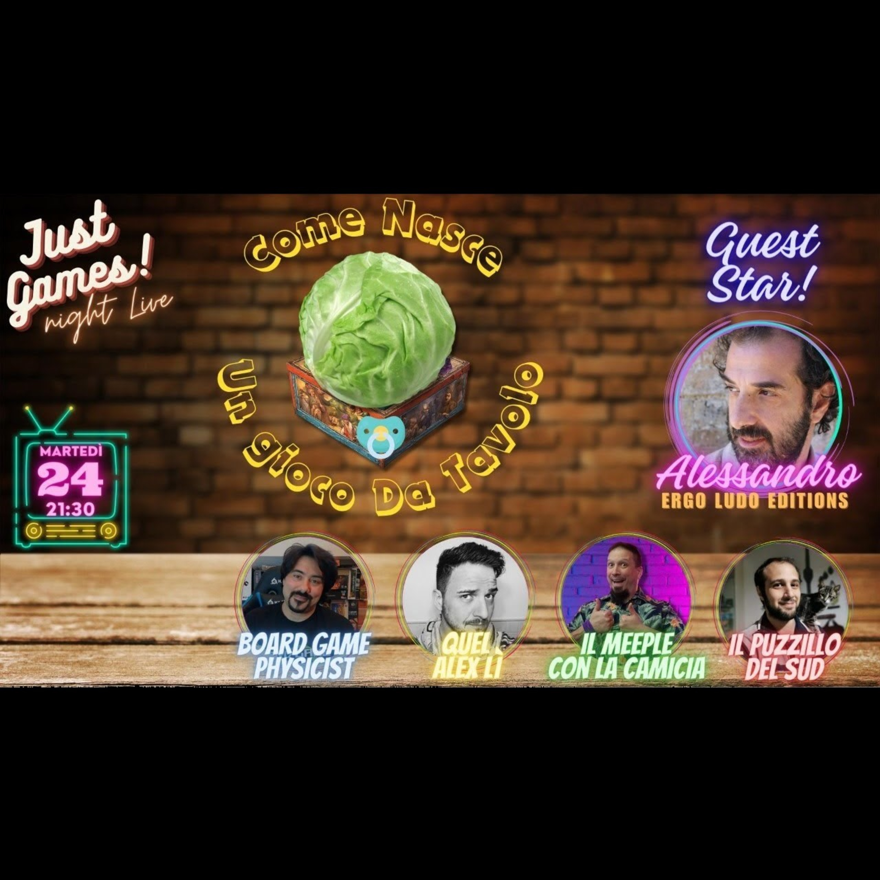 Questa sera insieme ad un ospite d'eccezione parliamo di come nascono i giochi da tavolo! L'immagine di copertina della puntata dovrebbe già darvi un'idea. Ammiccare con sguardo segsy un cavolo finché non spunta un gioco al di sotto? No! Ma seguici per approfondire il discorso (anche sui cavoli).