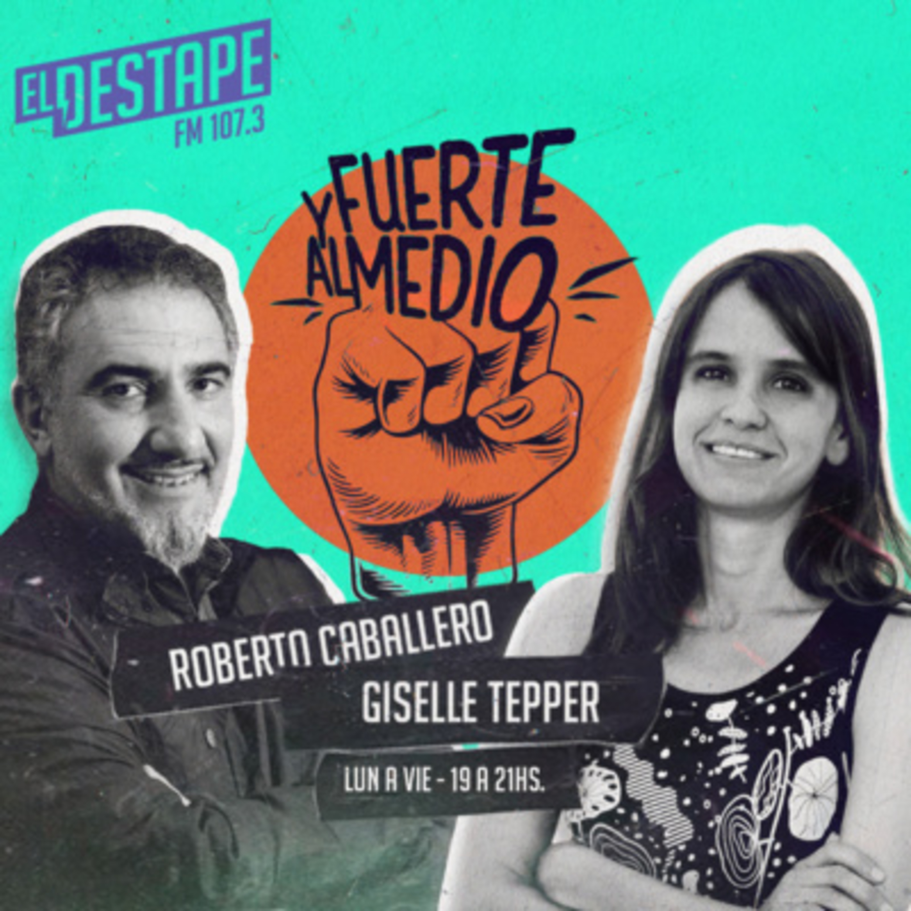 Fuerte y al Medio con Roberto Caballero y Giselle Tepper se transmite de lunes a viernes, de 19 a 21hs, por eldestaperadio.com y por la FM 107.3.