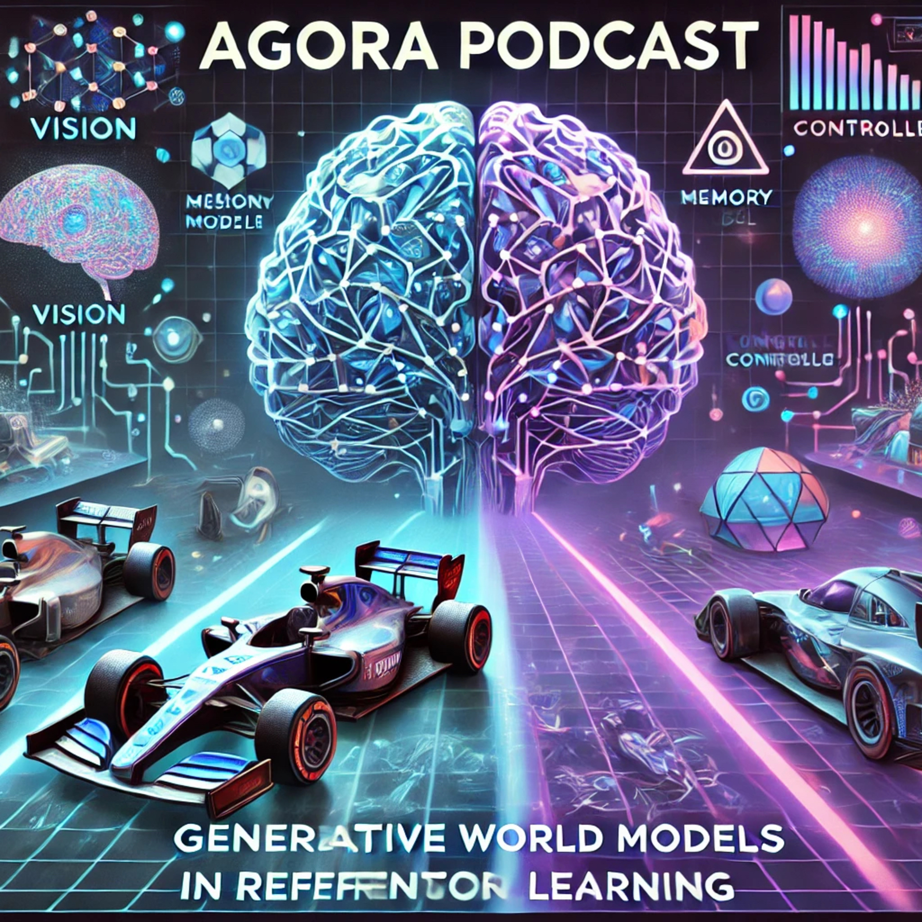 This podcast explores building world models using generative neural networks for reinforcement learning. The authors propose a three-component agent model—vision (V), memory (M), and controller (C)—inspired by human cognition, where V compresses visual input, M predicts future states, and C determines actions. Experiments in CarRacing and VizDoom demonstrate the effectiveness of this approach, achieving state-of-the-art results by training agents within their own hallucinated environments generated by the world model. The paper also discusses challenges like model exploitability and proposes an iterative training procedure to address limitations. Finally, it explores the implications of this approach for more complex tasks and real-world applications.