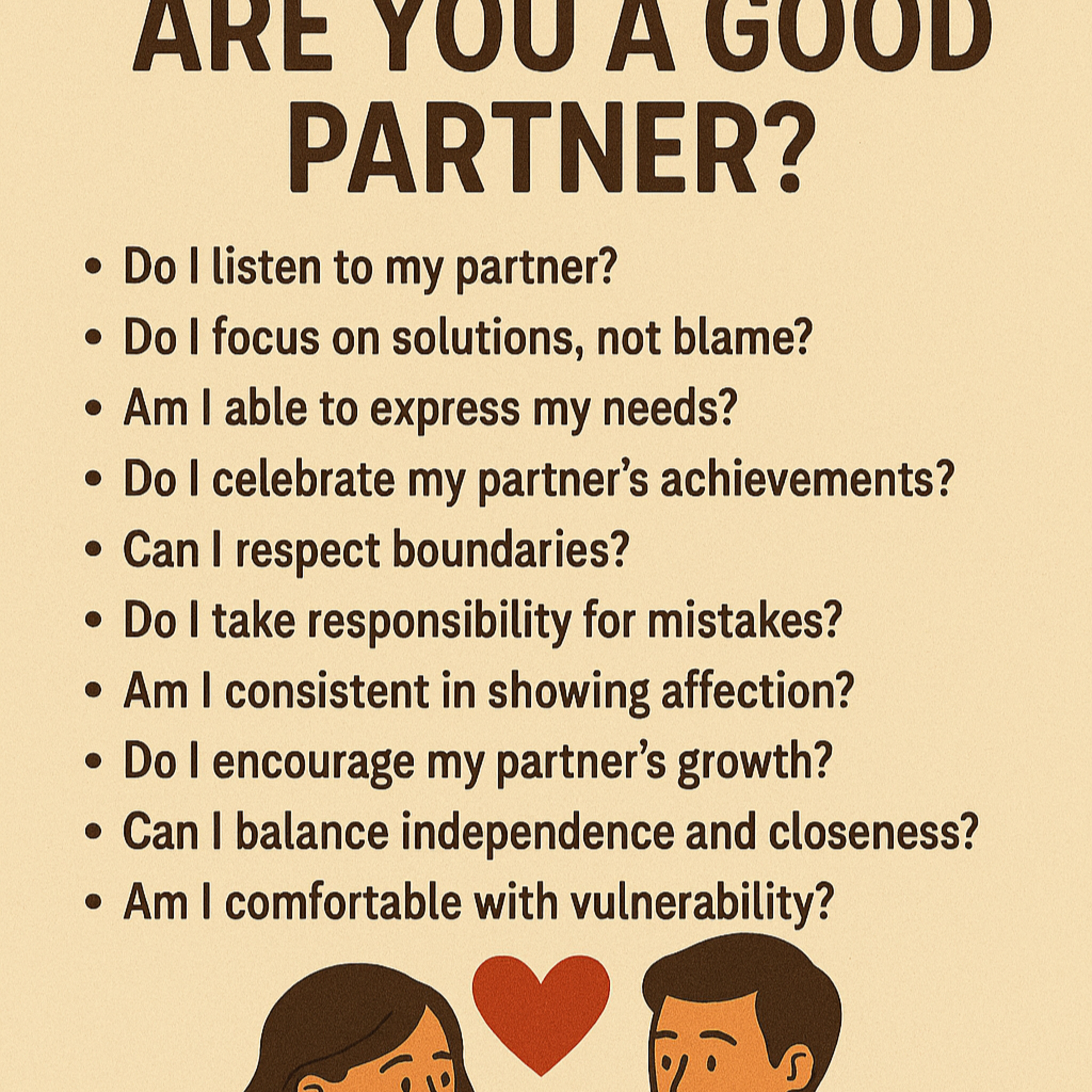 Ser una buena pareja no es algo que se tenga de forma natural, se debe aprender a través de autoconocimiento, de regulación emocional y de aprender a comunicarse de forma correcta, entre otras. Una pareja se compone de dos personas, si ambas tienen consciencia y autoconocimiento, la relación que pueden formar será más sana y de crecimiento, En este episodio hay 25 preguntas que te puedes contestar para saber que tan buena pareja eres y cuales son tus áreas de oportunidad para mejorar. Una buena relación de pareja empieza con una persona consciente y con inteligencia emocional.