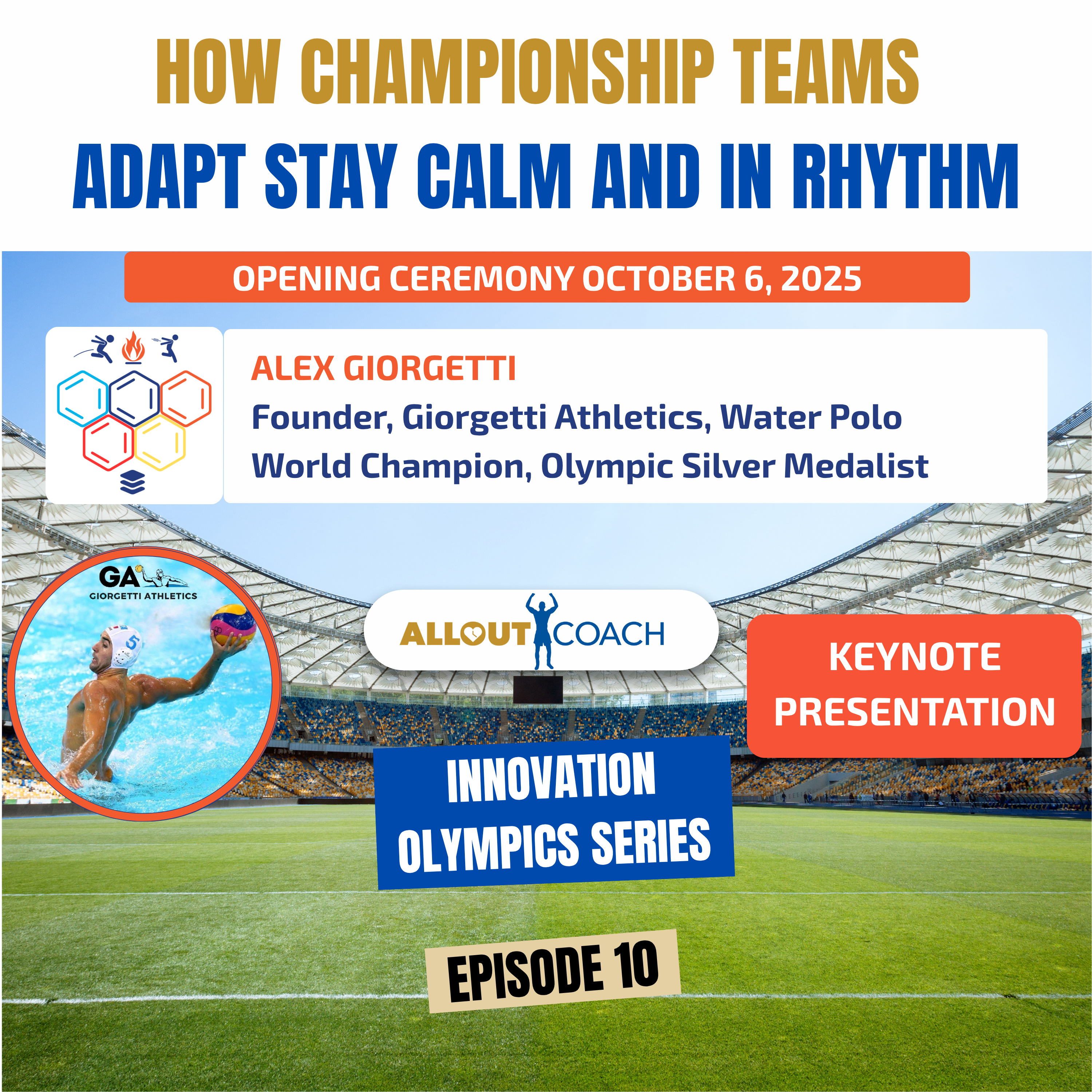 Alex Giorgetti is a celebrated professional water polo World Champion, Olympic Silver Medalist and owner of a non-profit organization, Giorgetti Athletics where his goal it to build next generation champions ready to earn top scholarships in best U.S. universities or reach professional water polo leagues across Europe. He was a guest keynote speaker at the 4th annual Medical Innovation Olympics where he shared vivid lessons from Olympics and World Championships on maintaining a resilient mindset, the power of generating strong unity and habits in teams, Medical Innovations in analytics to personalize training to a given player or position, and tangible lessons to build winning teams in business.0:00 Team Sport is like an Orchestra - Highlight