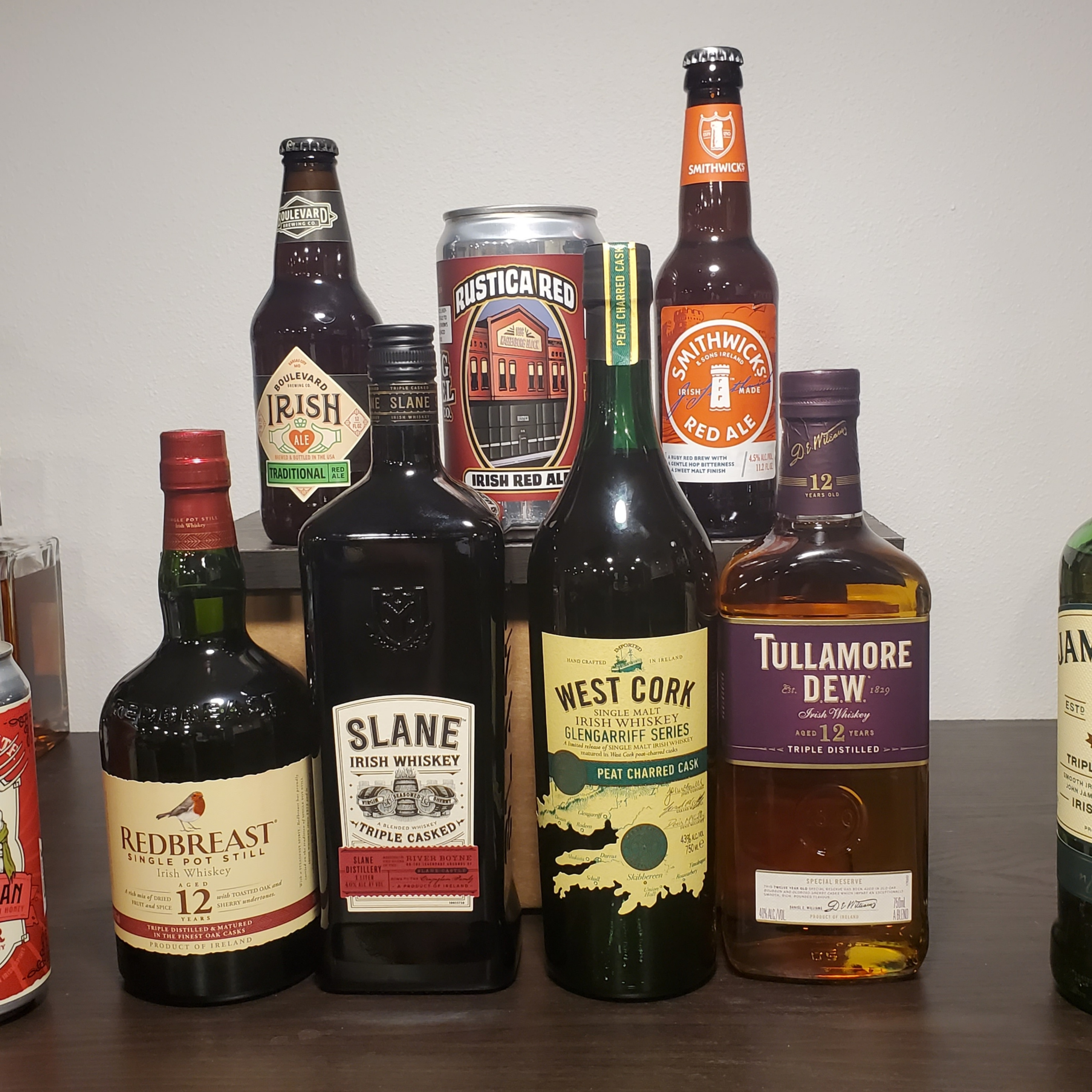 In this episode we split our tastings into two groups: beers, then whisk(e)ys. In the first group we sample and review Boulevard's Irish Ale, Swing Barrel's Rustica Irish Red Ale, and Smithwicks Red Ale. In the second group we sip on Slane Irish Whiskey, Tullamore D.E.W. 12 year, Redbreast Single Pot Still 12 year, and West Cork's Glengariff Series Peat Charred Cask, which was super similar to episode 64's Bog Oak Charred from last year. Be sure to check that episode out, too!