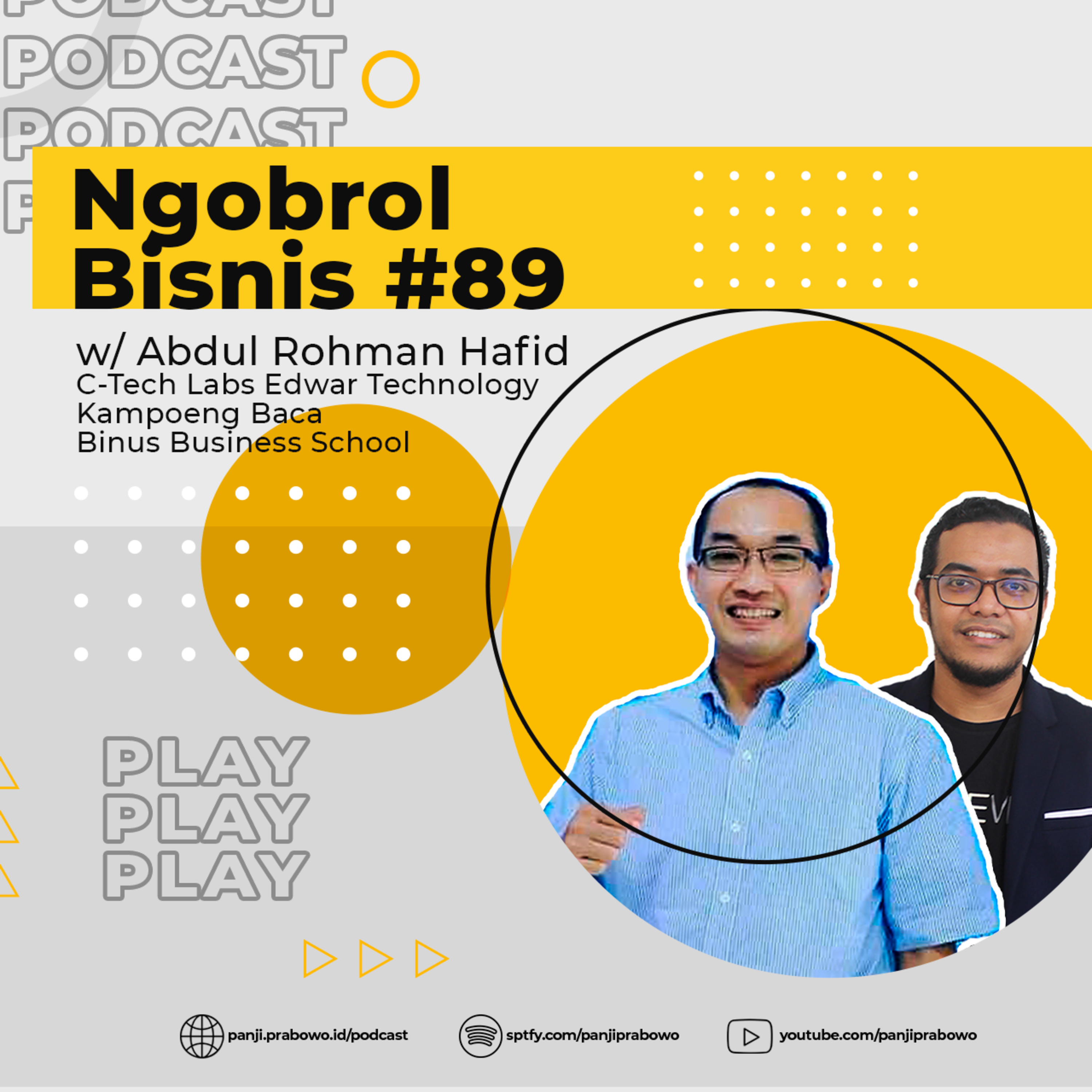 Kali ini saya ngobrol dengan @rohmanhafid kami diskusi tentang aktifitasnya di C-Tech Labs Edwar Technology, pengajar di BINUS Business School dan juga sebagai inistator Kampoeng Baca. Simak langsung!