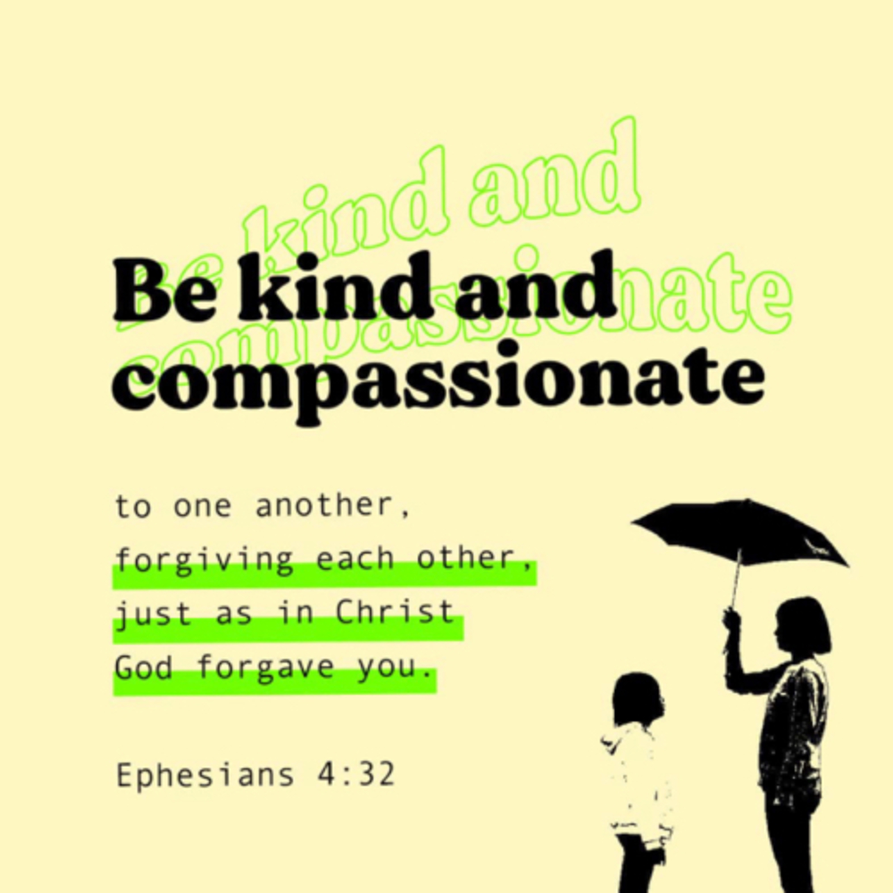 📖👩🏽💻ℹ️💁🏽♀️✅ EPHESIANS 4:32 Be KIND to one another, COMPASSIONATE, FORGIVING one another, AS GOD in CHRIST FORGAVE YOU.