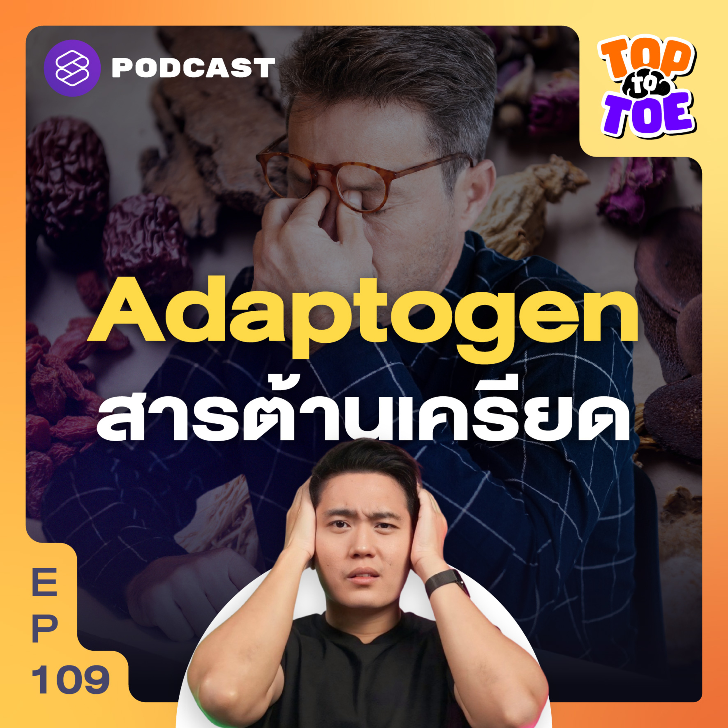 Top to Toe เอพิโสดนี้อธิบายว่าร่างกายตอบสนองอย่างไรเมื่อเจอความเครียด โดยแบ่งความเครียดเป็น 3 ระดับ ชวนทำความเข้าใจเกี่ยวกับฮอร์โมนคอร์ติซอลว่าไม่ใช่ตัวร้าย แต่คือฮอร์โมนตื่นตัวที่ช่วยรับมือกับความเครียด พร้อมแนะนำวิธีลดความเครียดที่นอกจากการทำสมาธิและออกกำลังกาย แต่ยังสามารถทำให้ฮอร์โมนความเครียดสมดุลด้วยสาร Adaptogen ที่มีอยู่ในอาหารอีกด้วย