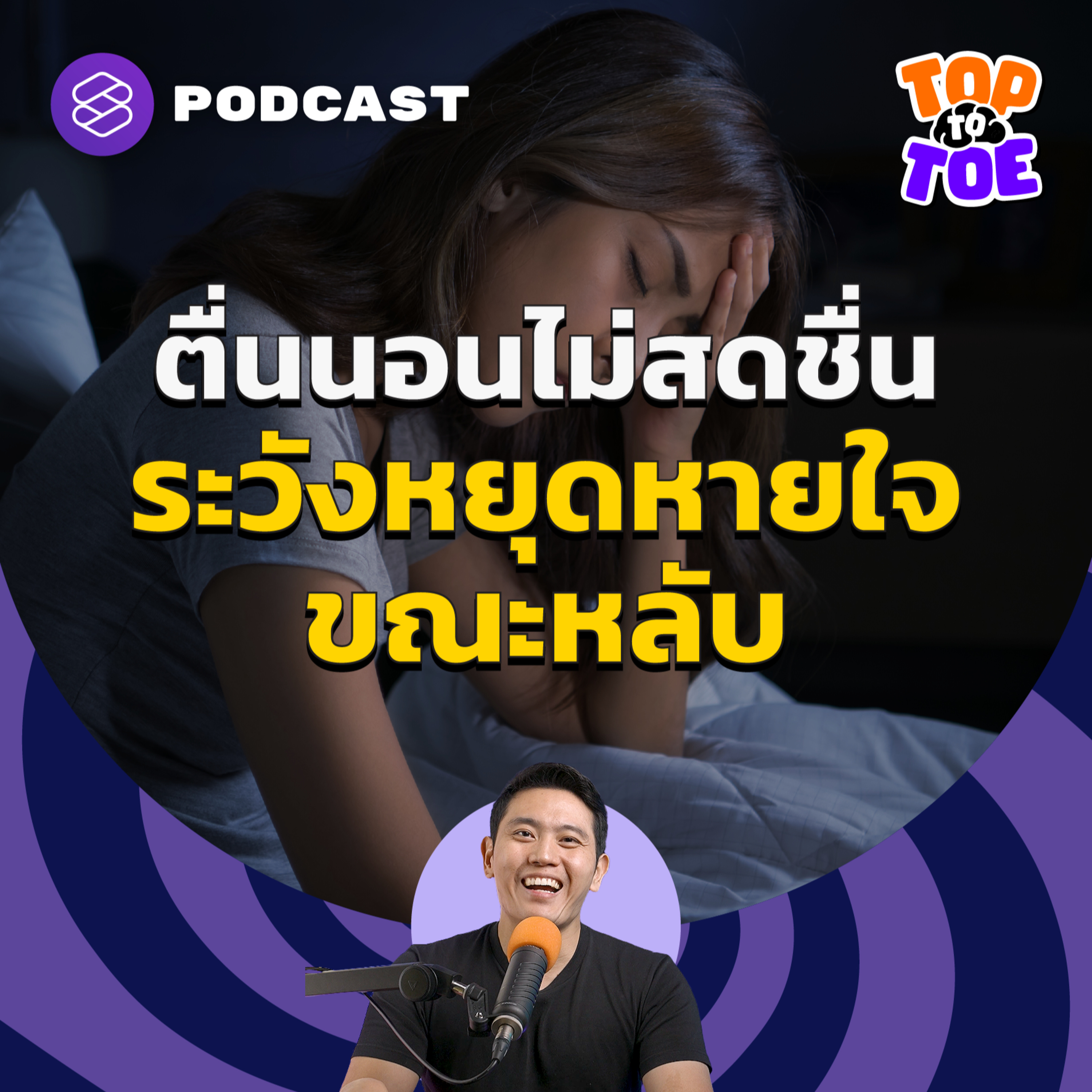 รายการ Top to Toe และ ดร.ข้าว ต้นสมบูรณ์ จะพาไปสำรวจอาการและสาเหตุของภาวะหยุดหายใจขณะหลับ การรักษาที่มีตั้งแต่การใส่เครื่องช่วยหายใจไปจนถึงการผ่าตัด เพราะถ้าไม่ได้รับการรักษาอย่างถูกวิธีอาจนำมาซึ่งโรคต่างๆ ที่คาดไม่ถึง รวมถึงการใหลตาย และอาจเสียชีวิตได้ในที่สุด