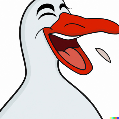 Thumbnail DALL·E prompt: "Generate a picture of a happy goose with a big smile on its face and tears of laughter streaming down its cheeks, cartoon style"