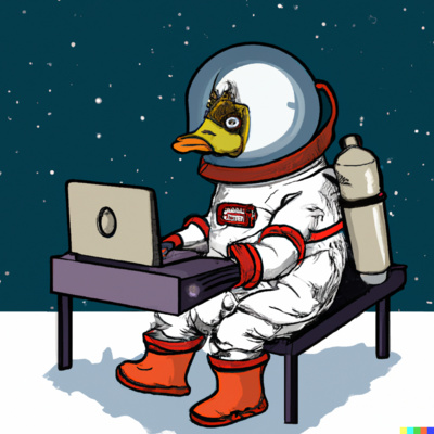 Thumbnail DALL·E prompt: "an goose dressed as an astronaut in space writing an email on a laptop, cartoon style"