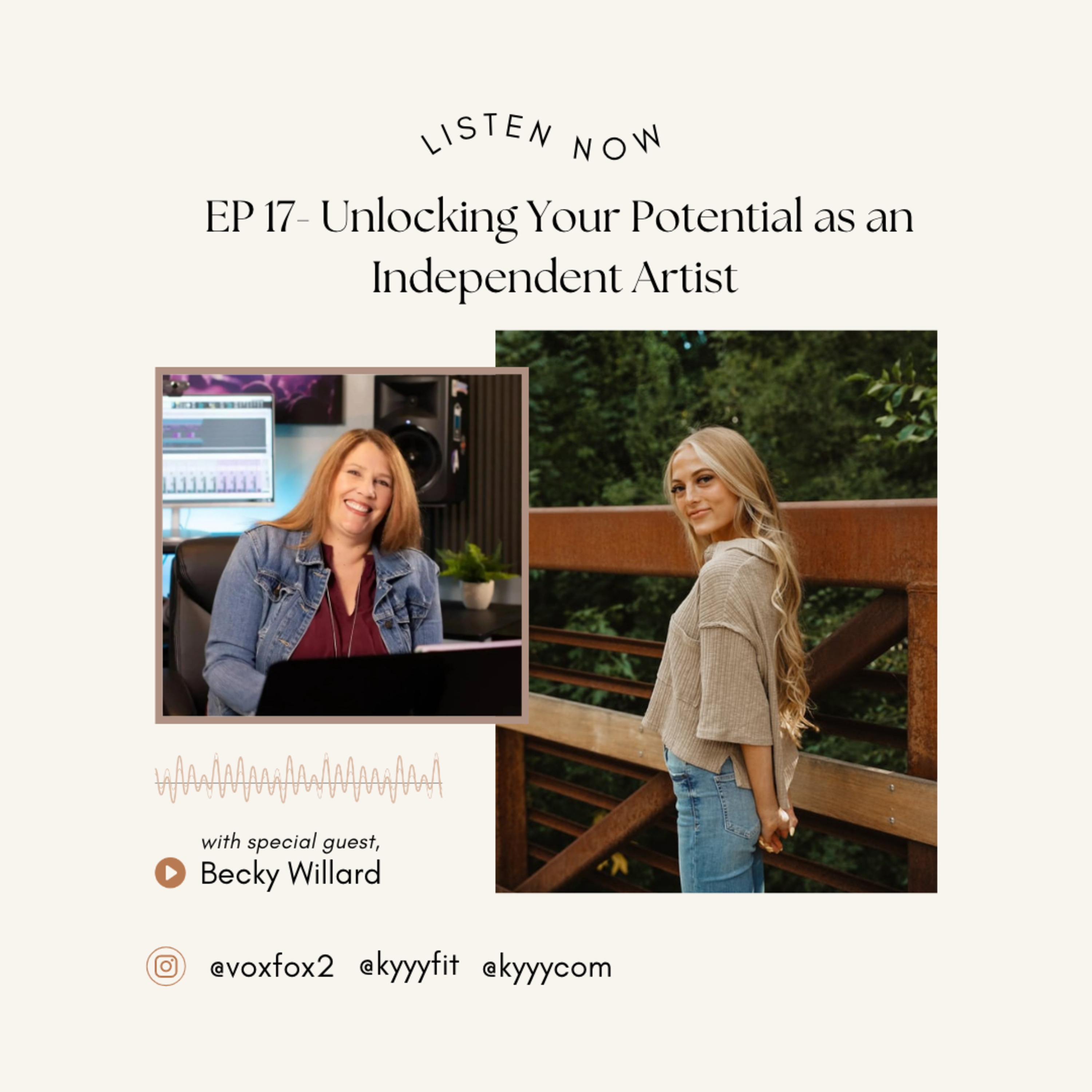 Becky Willard music career spans nearly three decades working in nearly every corner of the music industry. Her passion is in finding and working with the most determined artists who are ready to take control of their artistic career. She’s coached, mentored, and developed a number of artists who’ve been featured on The Voice, American Idol, America’s Got Talent, The X-Factor and more! Join us for tips on how to grow as an independent artist (singer, writer, music production, etc..) how to start creating music, what to bring to your producer, mindset coaching and stories of Beckys experiences. :)