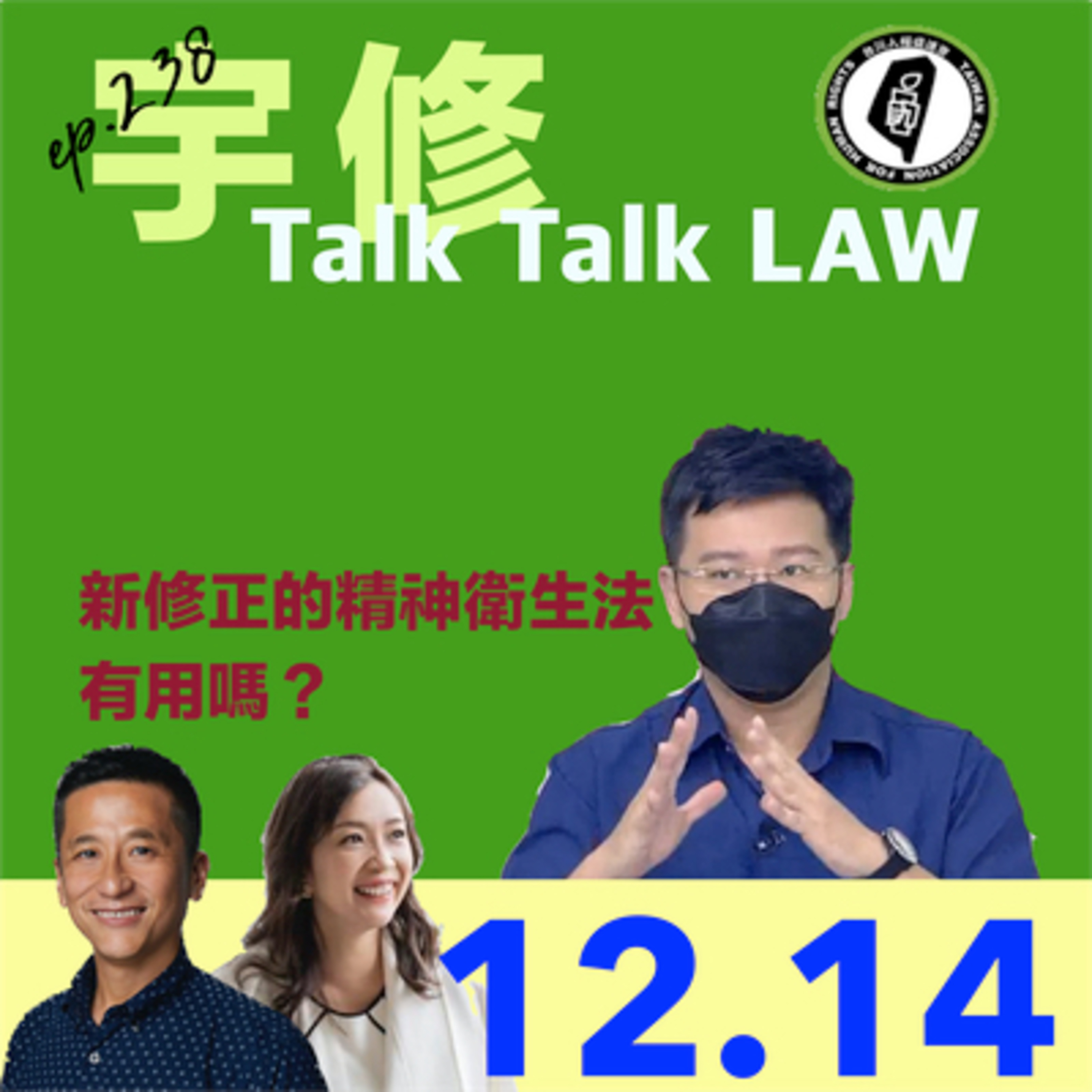 近年台灣精神疾病的社會爭議迭起,如北投女童割喉、小燈泡、鐵路殺警:但也有如「我們與惡的距離」這樣的戲劇討論精神病患者的困境。在11月29日,立法院三讀通過了精神衛生法修正草案,從患者的權益出發,加入了強制住院需法官保留、病人支持同意權與社會支持等制度。但這樣的修正,則被精神醫學會大力反對,認為是污名化了醫療行為。這次的宇修talktalklaw要聊的,就是這次修法背後的價值衝突,請大家一起聆聽。