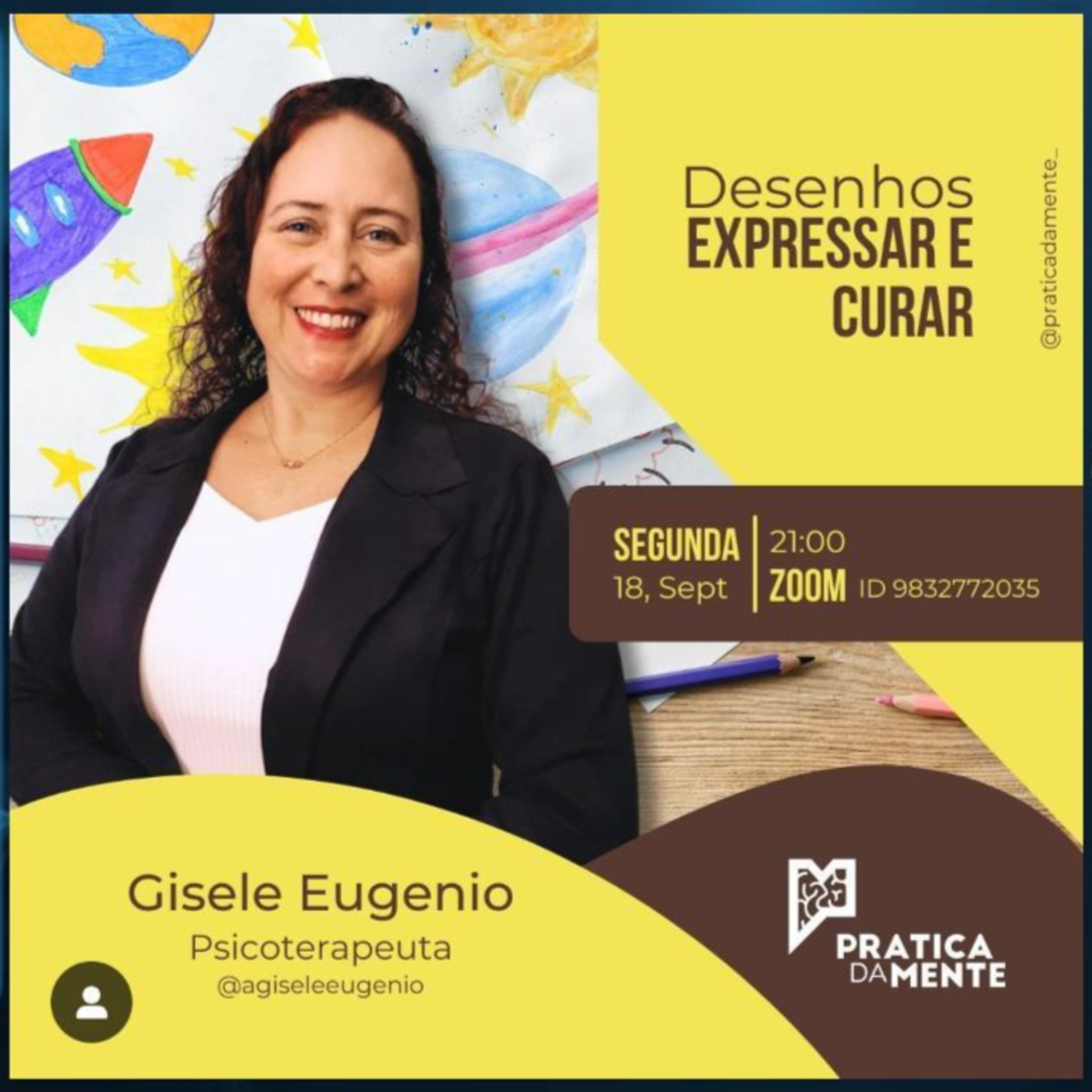 A Prof. Gisele Eugenio é uma psicoterapeuta experiente que irá compartilhar insights valiosos sobre o uso terapêutico dos desenhos. Uma oportunidade imperdível!
