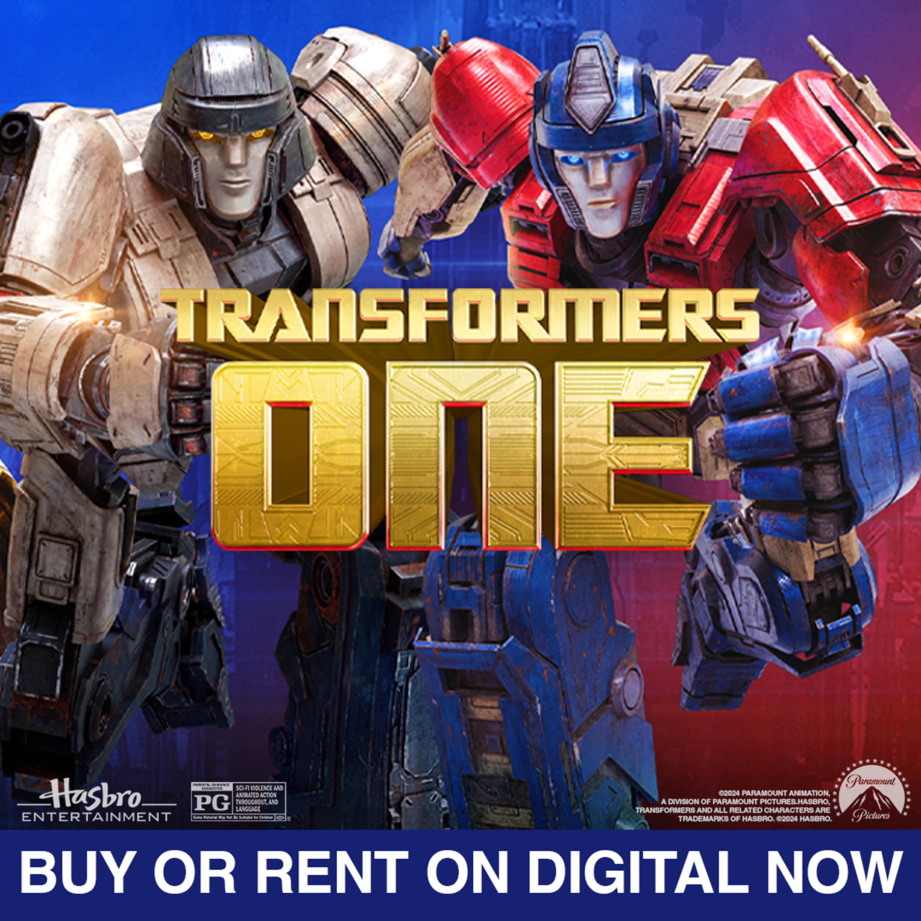 Bring home #TransformersOne and buy on Digital now! Watch the untold origin story of #OptimusPrime and #Megatron, brothers-in-arms turned sworn enemies who changed the fate of #Cybertron forever. #ChrisHemsworth, #BrianTyreeHenry, and #ScarlettJohansson star in the film critics are calling "the perfect movie for the whole family!" Includes over 45 minutes of fun-filled bonus features! Available at participating retailers. Buy Transformers One on Digital today. Rated PG. From #ParamountAnimation and #Hasbro.