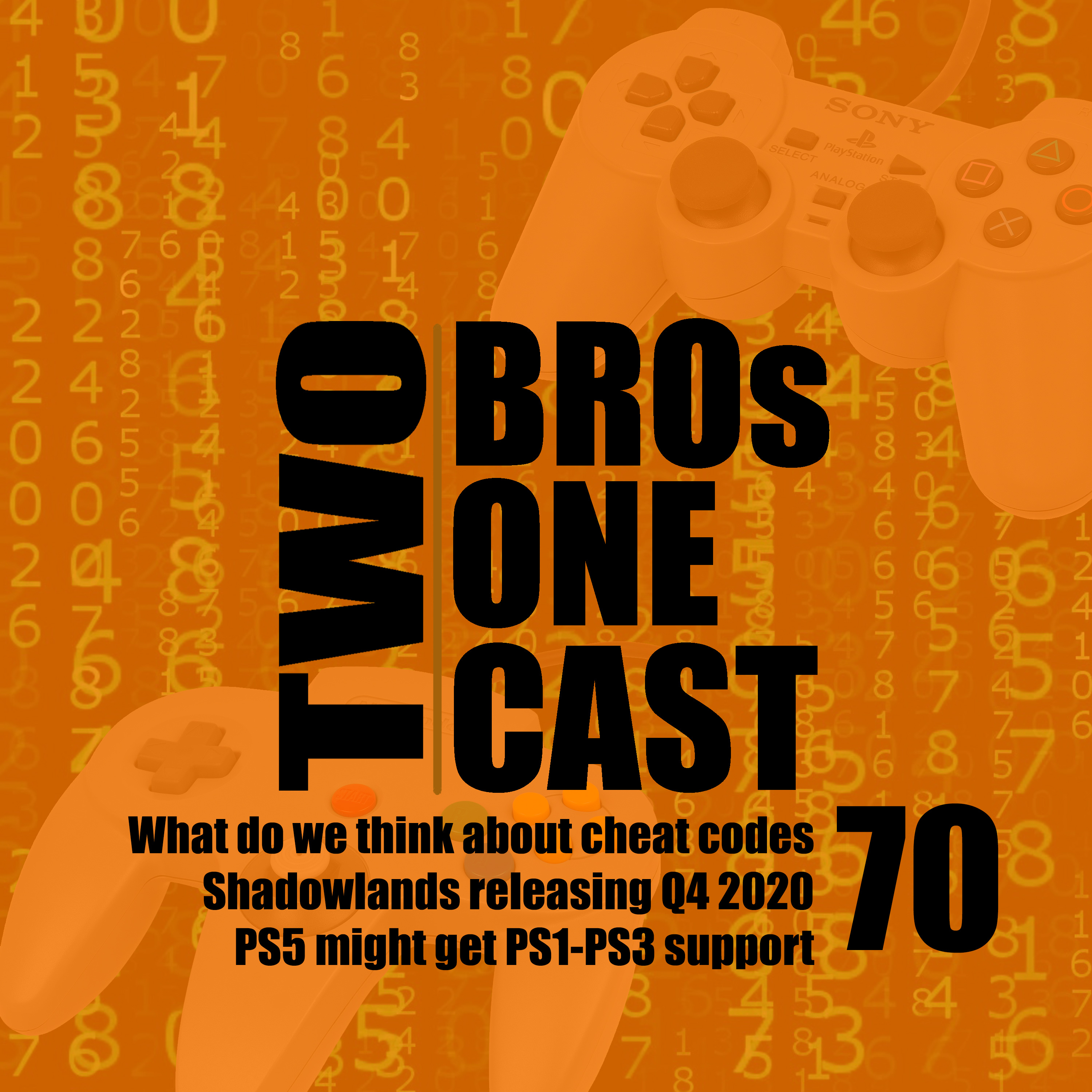 This is Two Bros One Cast! The Podcast where we get a chance to break away from the grind, to sit down every week and talk about things for your enjoyment! This week we talk about our opinions on cheat codes, Shadowlands releasing Q4 2020, and PS5 possible getting support for PS1/PS2/PS3 games.