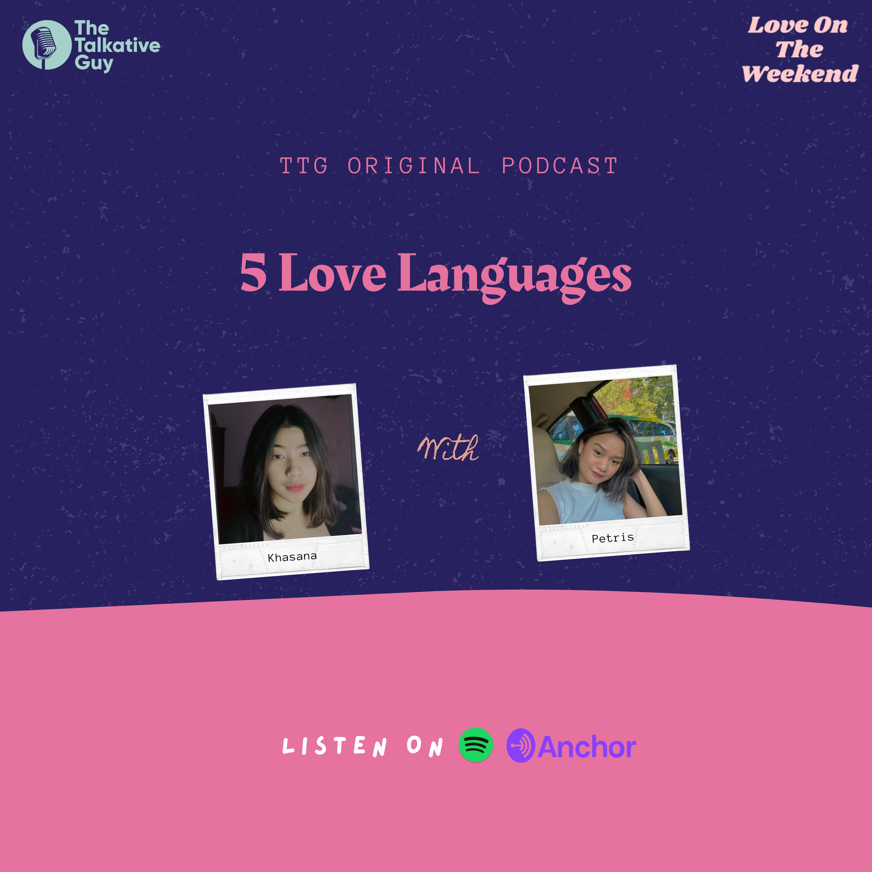 Ssstt..ternyata cinta itu punya bahasanya masing-masing loh dalam suatu hubungan. Gak hanya untuk pasangan tapi juga bisa ke orang-orang tersayang di sekitar kita. Mau tau apa aja? Dengerin yuk cerita Khasana & Petris kali ini. Abis dengerin terus boleh loh cerita love languages kamu apa, di instagram @thetalkativeguy_id.