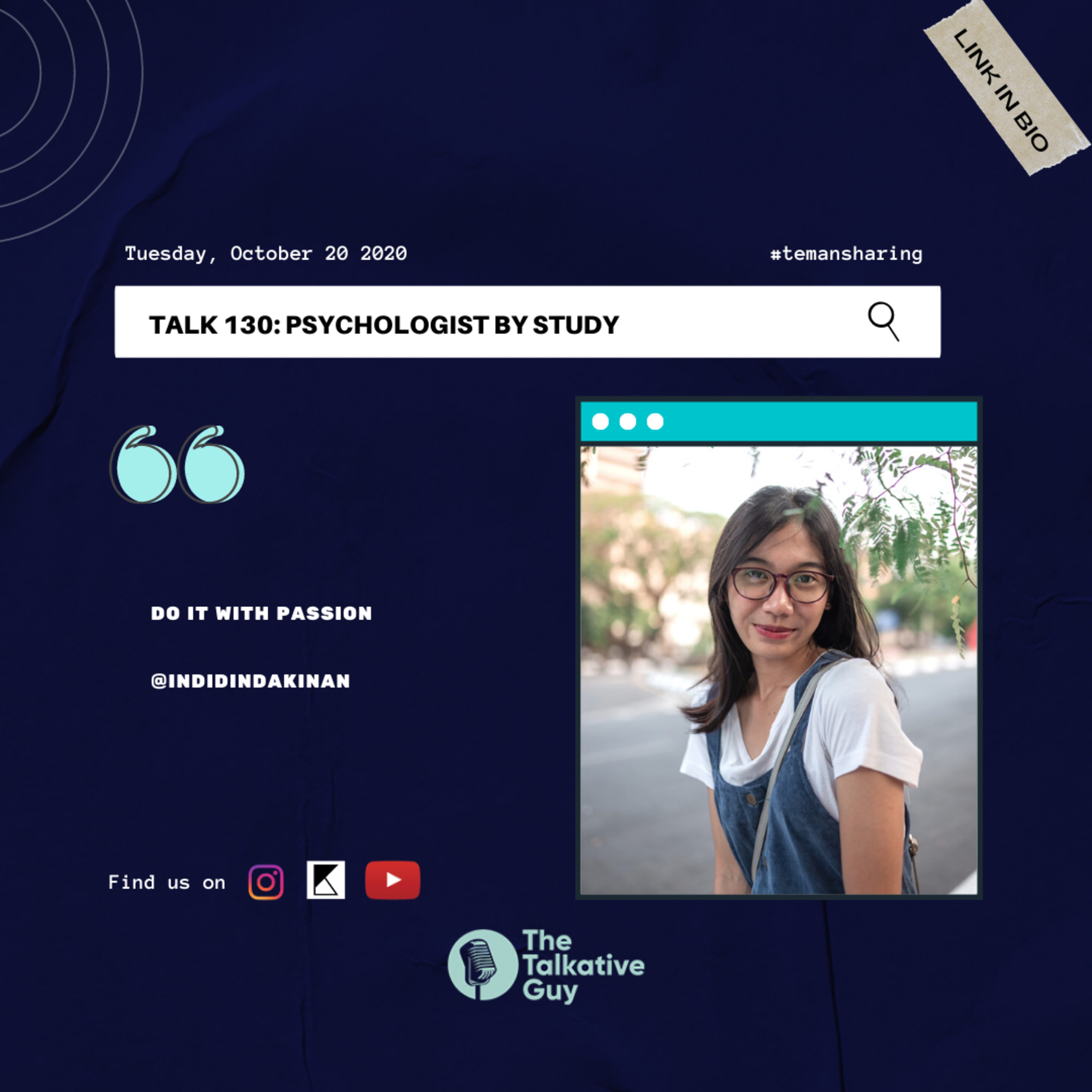 In this episode, kinan talked about how she started interest in psychology, make art as a hobby and important of maintaining mental health during pandemic.