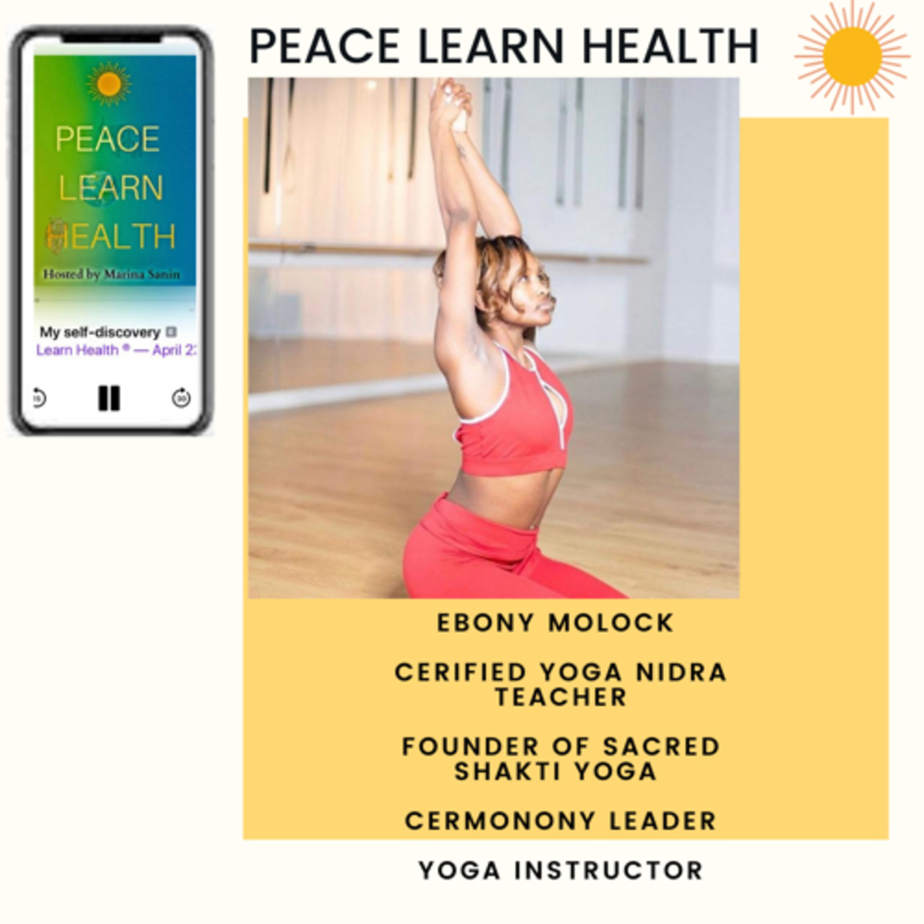 Ebony Molock is the founder of Sacred Shakti yoga. She has done 200 hr Kripalu Yoga and she is also a Yoga Nidra teacher. During her Yogic journey, not only did she discover deep levels of consciousness, but also embarked upon the spiritual awakening of Shakti energy. Since 2017, the focus of her teachings has been the practice of Hatha Yoga, Yoga Nidra, Meditation and Full Moon Ceremonies which has been empowering women. Her goal is to awaken the Divine feminine energy(Shakti) in everyone to allow them to experience deeper layers of consciousness, serenity, and power. In this episode we learn that Ebony is also reiki practitioner and we learned her motivation behind why yoga has been a big part of her self-discovery journey among other things. Her next Full Moon ceremony is July 3rd you can register here: https://www.yogawithebony.com/event-info/virtual-full-moon-ceremony-4 The ceremony is donation based and the causes are : https://www.translatinacoalition.org/
