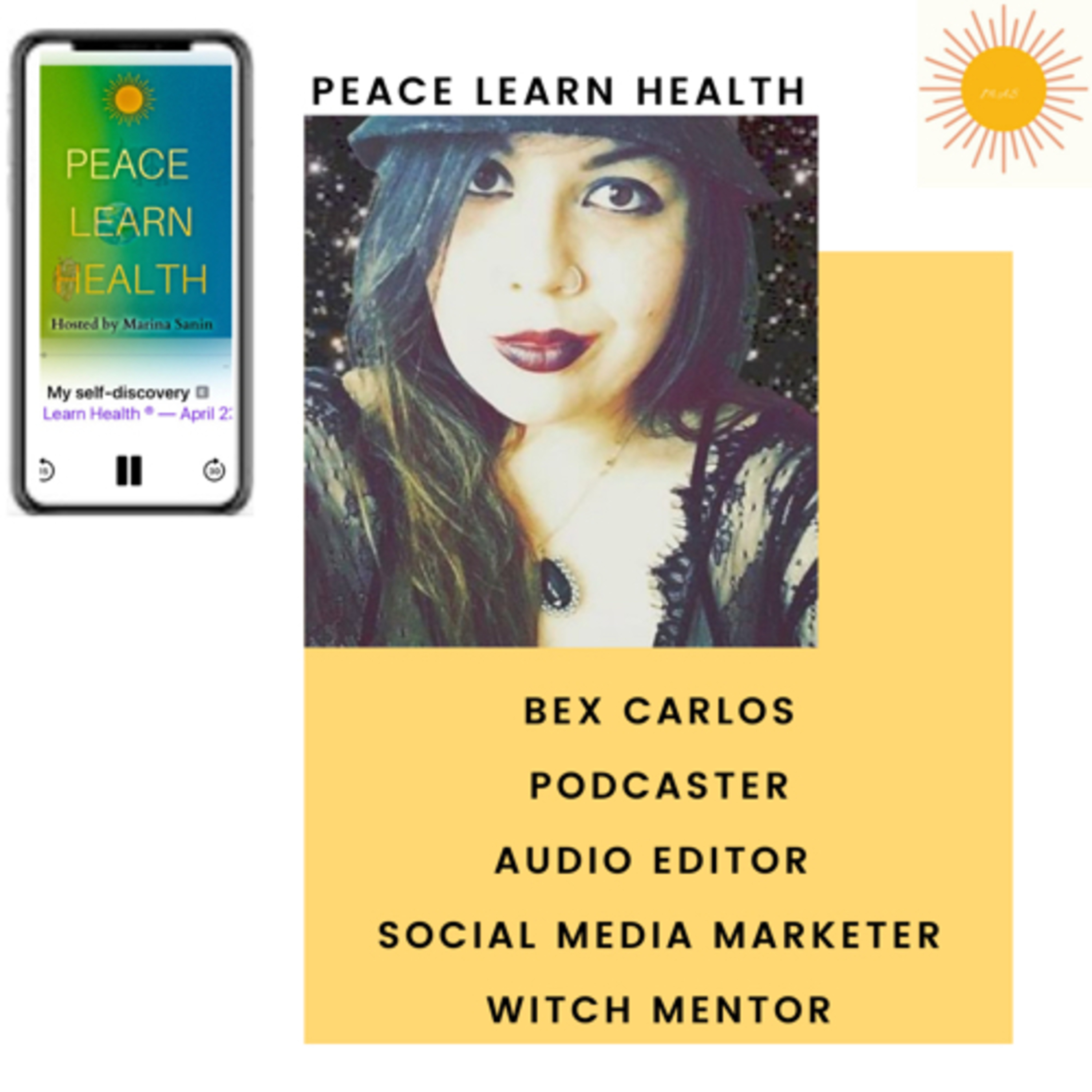 When she is not editing audio, she is practicing her brujería and has been learning the craft since 2015. Before that she was in touch with things beyond her control, and finally stopped being so afraid of the unknown. In this episode we truly learn what a bruja is all about and what the real meaning is vs what our society tell us what it means. To find out more about Bex Carlos check out her website: https://www.bexbecasting.com/ PeaceLearnHealth ® Podcast Disclaimer: All information on this podcast is to educate, inspire, and entertain you on your self-improvement journey . Please seek your own qualified professional provider. In no event will the host be liable to you at anytime, it is your choice how you receive the information that is provided therefore we assume no responsibility.