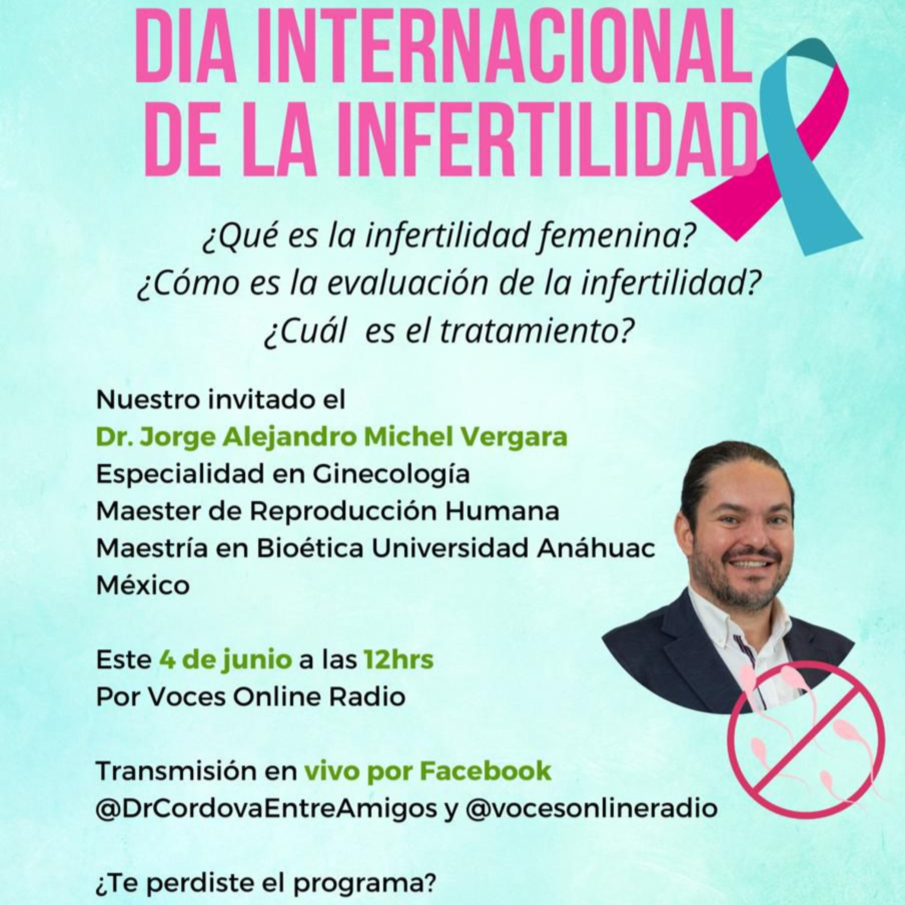 Hoy nos acompaña via Zoom el Dr. Jorge Alejandro Michel Vergara, Especialidad en Ginecología, Director General CERFERTIL, Master en Reproducción Humana y Maestría en Bioética, para hablarnos sobre el Dia Internacional de la Infertilidad.