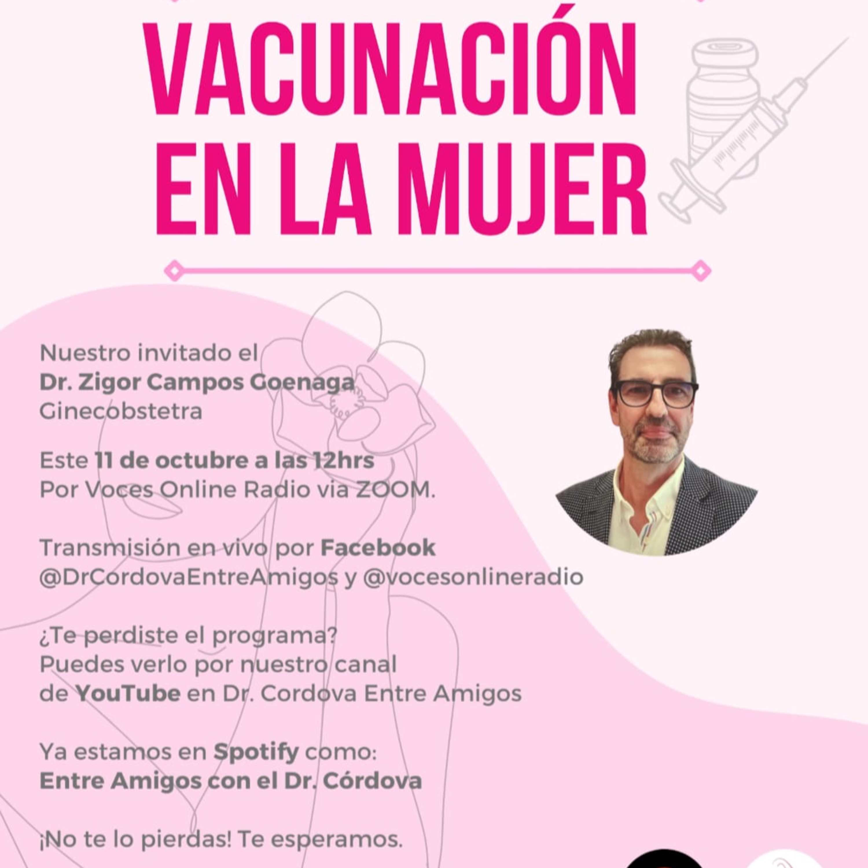 Esta semana via Zoom el Dr. Zigor Campos Goenaga, Médico Ginecoobstetra nos habla sobre la Vacunación en la Mujer.