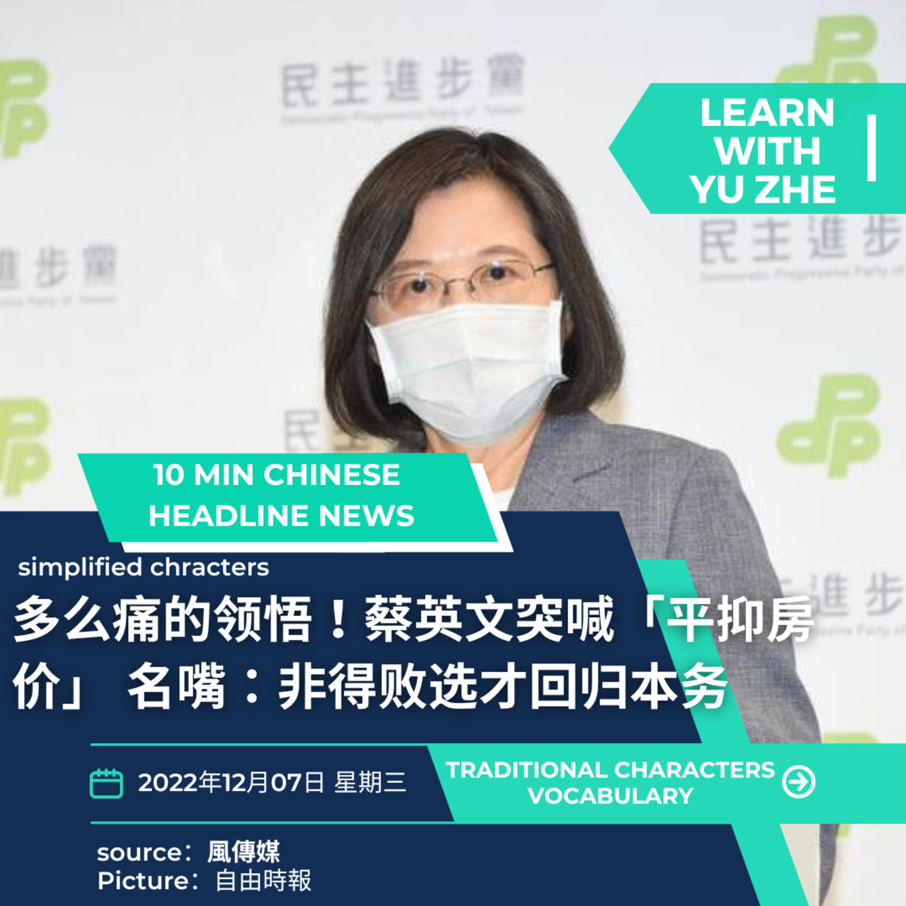 🏠President Tsai Ing-wen stated that she would develop a housing policy, but she was quickly chastised. What was the complaint? Come and listen to today’s episode! Today we will learn economic terms as well as traditional Chinese culture.