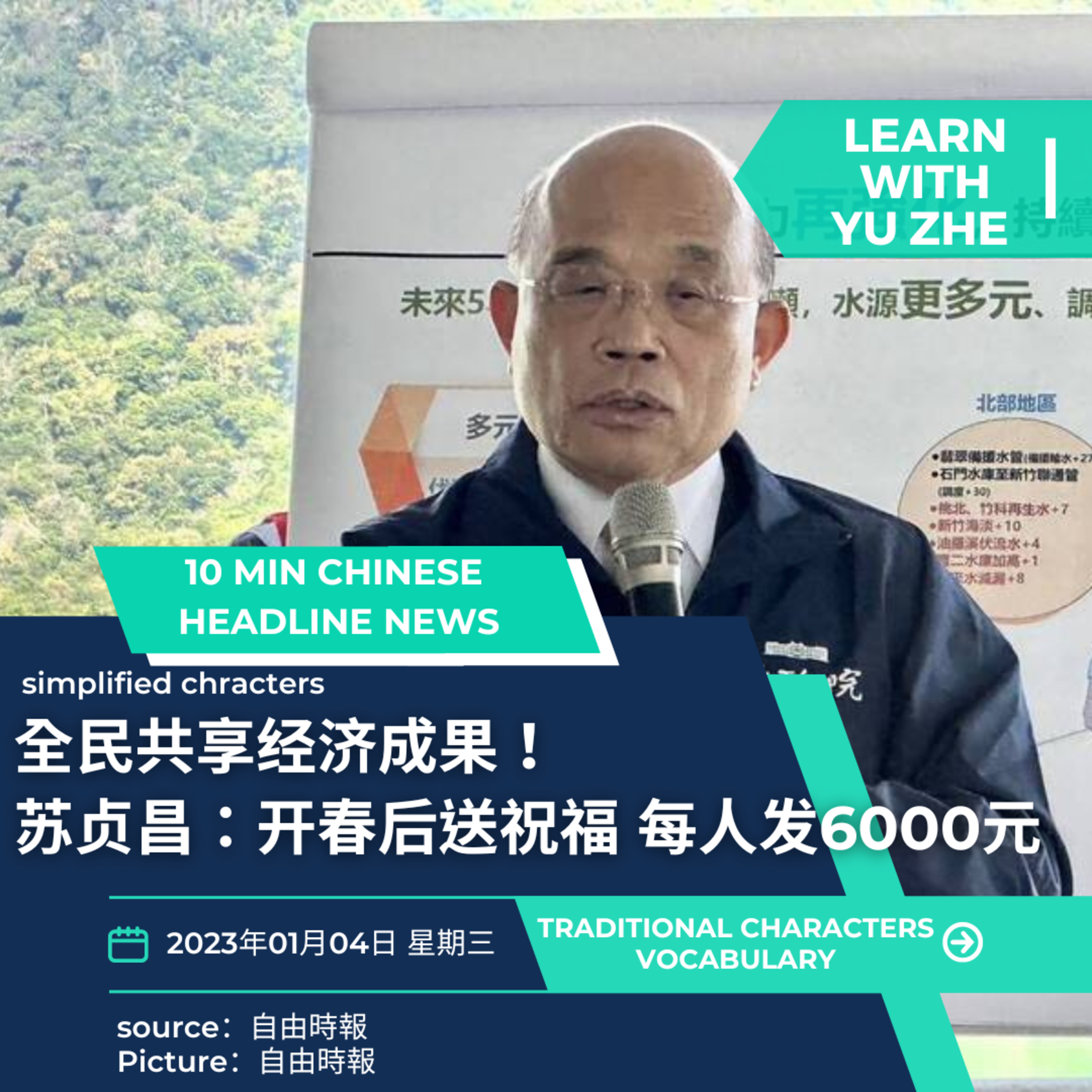 來源/来源:全民共享經濟成果!蘇貞昌:開春後送祝福 每人發6000元 - 政治 - 自由時報電子報 (ltn.com.tw)