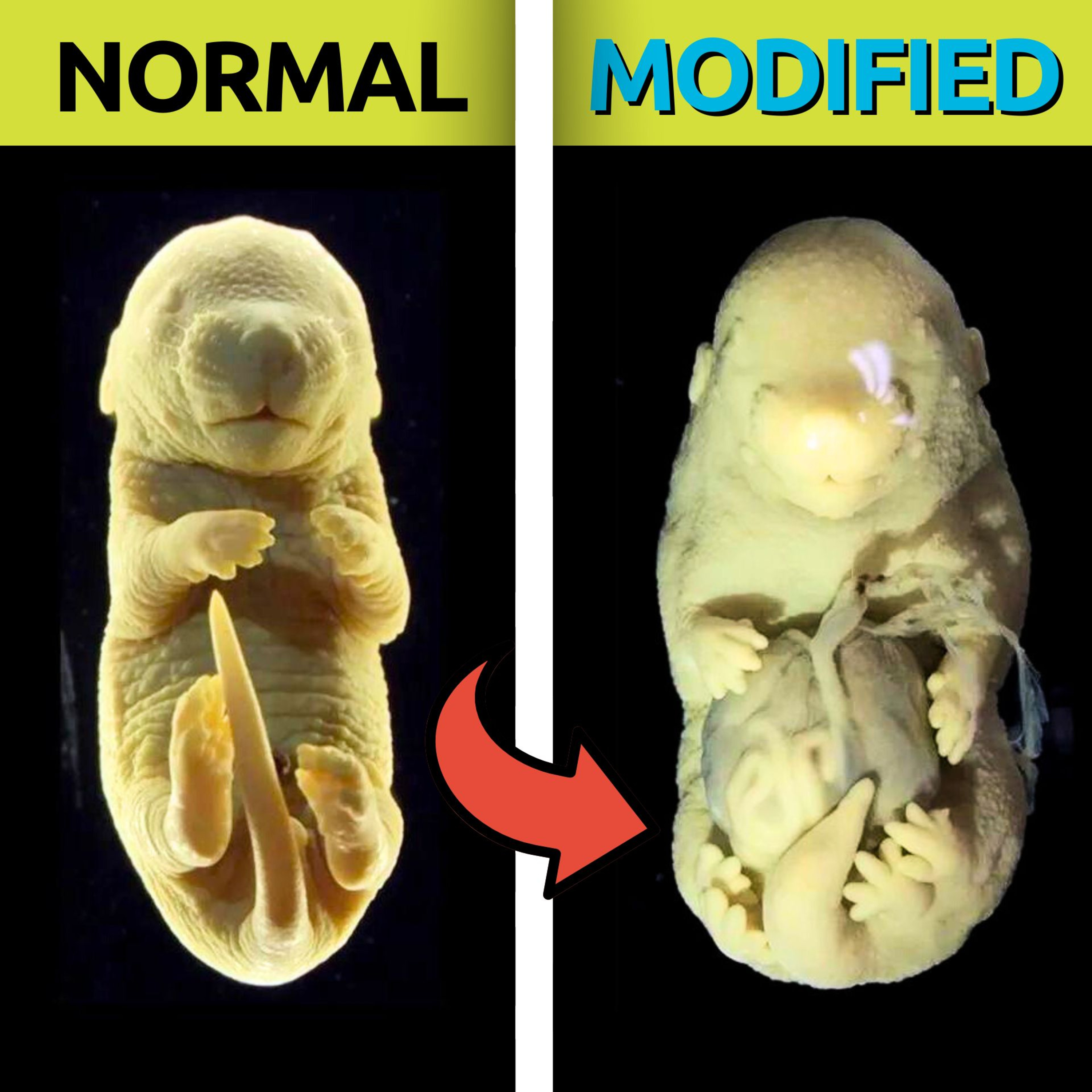 Mouse Embryo With 6 Legs And No Genitals Created By Scientists – But Why? https://www.iflscience.com/mouse-embryo-with-6-legs-and-no-genitals-created-by-scientists-but-why-73638
