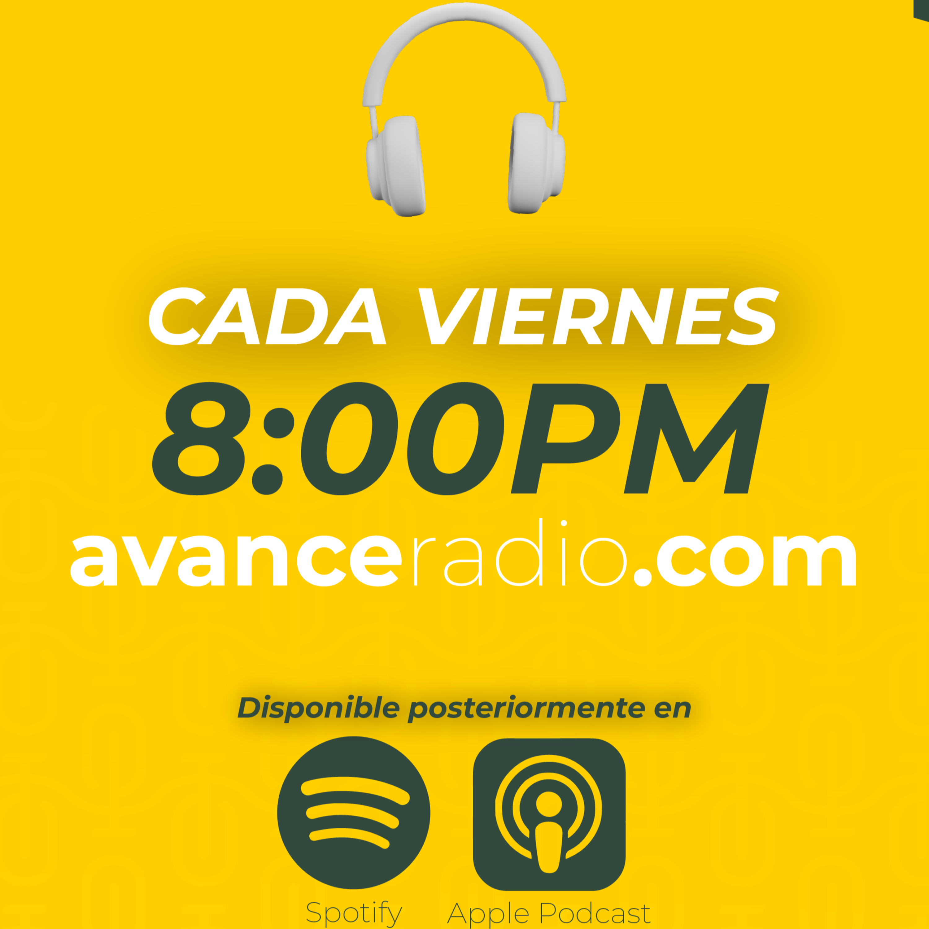 En vivo cada viernes a las 8:00pm y con repetición los sábados a las 11:00am en avanceradio.com.