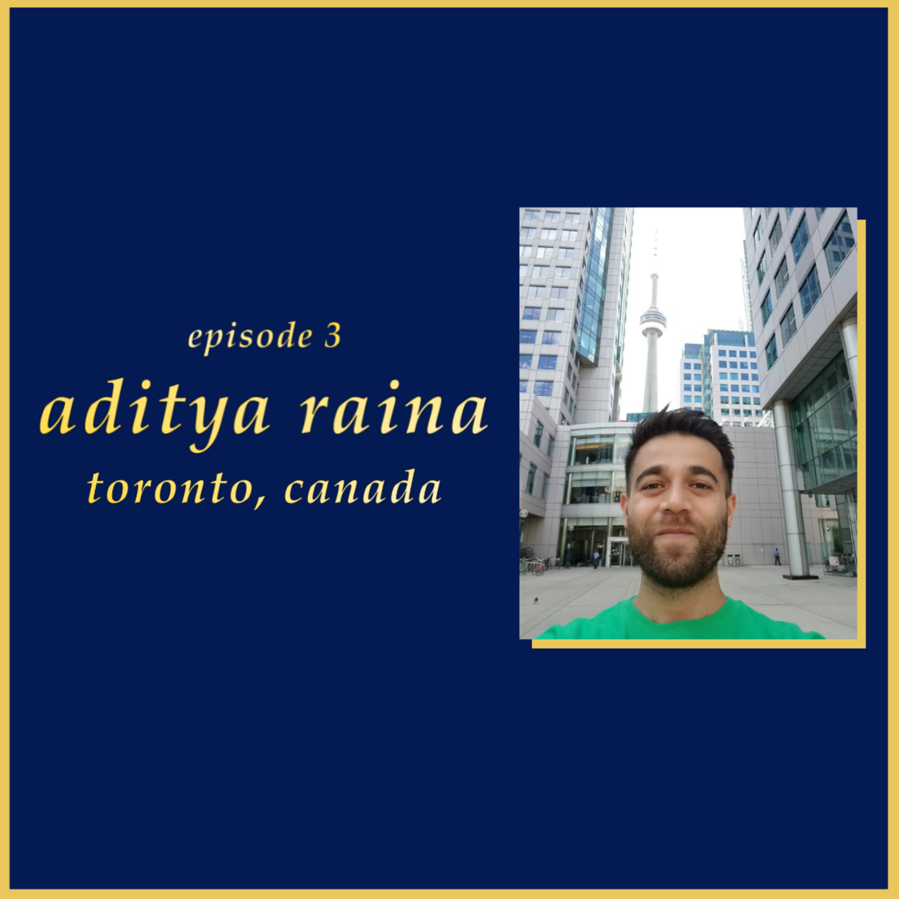 In this episode, we're talking to Aditya Raina, a 31 year-old consultant based out of Toronto, CA. Originally from Delhi, he moved to the city in 2019 to pursue his MBA from the Rotman School of Management at the University of Toronto. I've known Aditya for a long time - he's sharp, insightful, and as I found out, keenly aware of his experiences as an immigrant. Our conversation goes through a variety of personal, societal, and professional topics, including how vulnerability is the key to building lasting relationships, what makes a new place feel like 'home', the curse of being an immigrant, the salad bowl vs the melting pot, and finally, knowing yourself to know what you're doing.