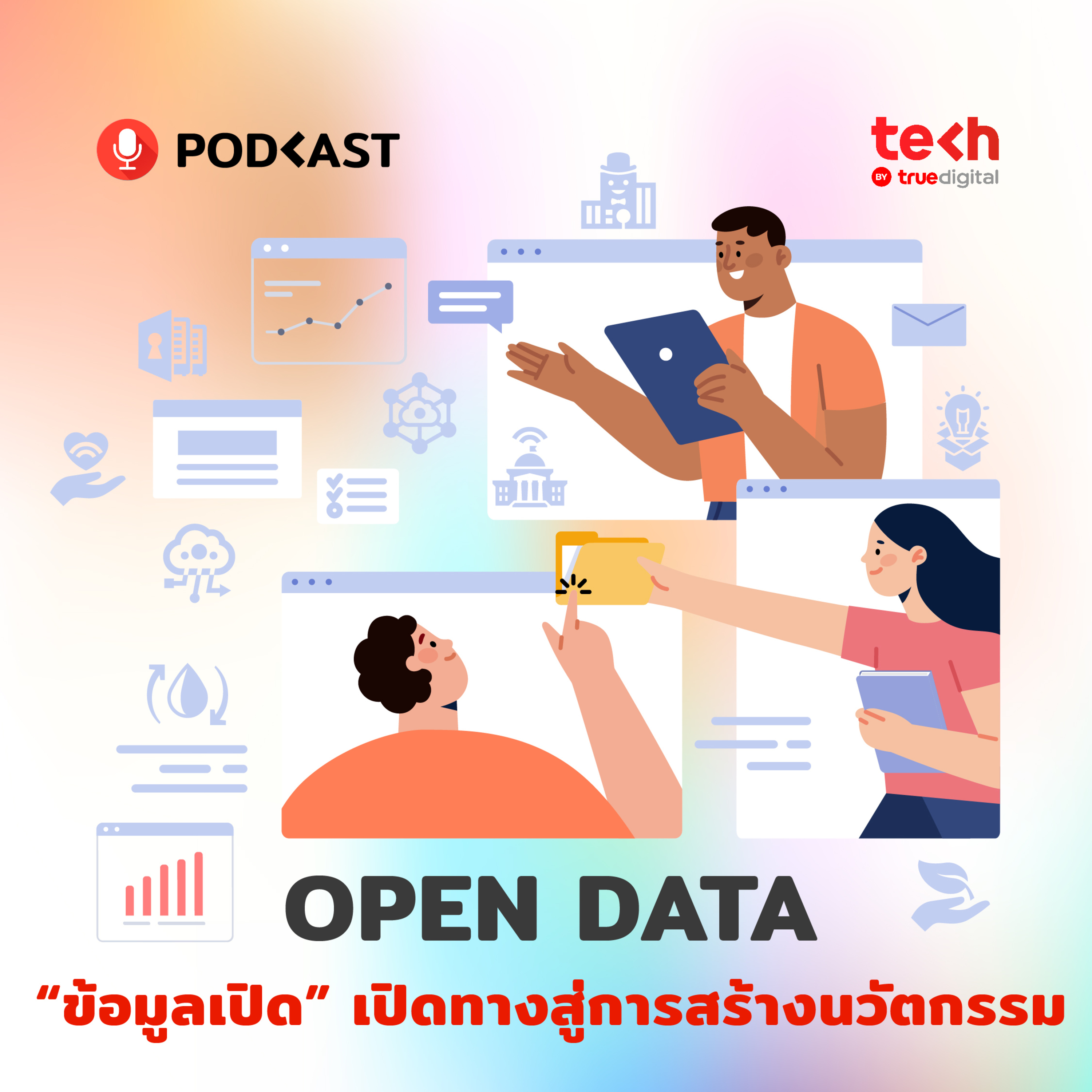 ช่วงนี้เราอาจจะได้ยินคำว่า Open Data อยู่บ่อยนักจากทางภาครัฐ ที่ได้จัดทำข้อมูลเปิดเพื่อให้ประชาชนอย่างเราสามารถเข้าถึงข้อมูลต่าง ๆ เพื่อเพิ่มความโปร่งใสในการบริหารบ้านเมือง โดยคำว่า Open Data หรือข้อมูลเปิดจากภาครัฐนั้นมีศักยภาพมากกว่าการให้เราได้เห็นการทำงาน หรือการใช้งบประมาณจากภาษีประชาชน Tech By True Digital Podcast ขอพาไปทำความรู้จัก Open Data ในความเป็นไปได้ที่ว่าอาจเป็นทรัพยากรอันสำคัญของการนำไปสู่การพัฒนานวัตกรรมเพื่อปลดล็อกคุณภาพชีวิตให้กับชีวิตผู้คนและสังคม